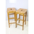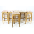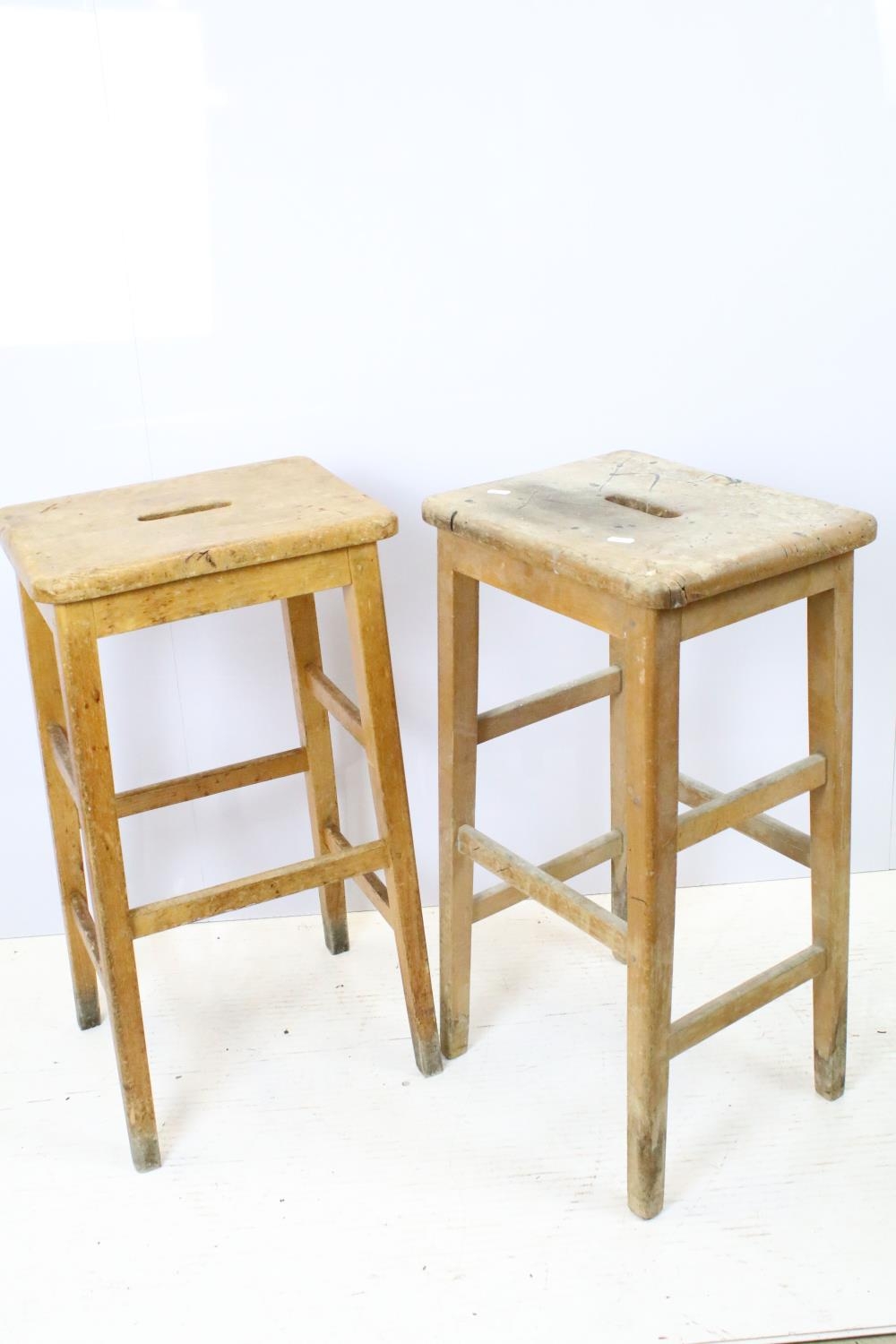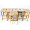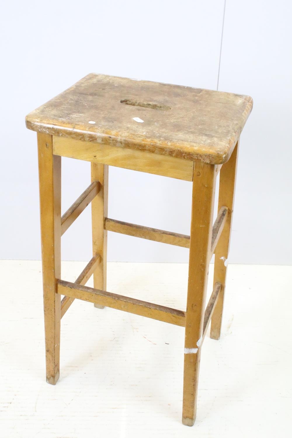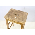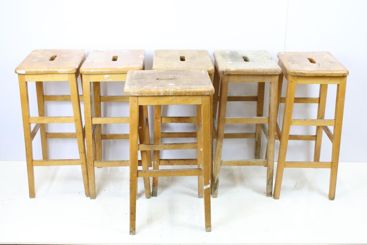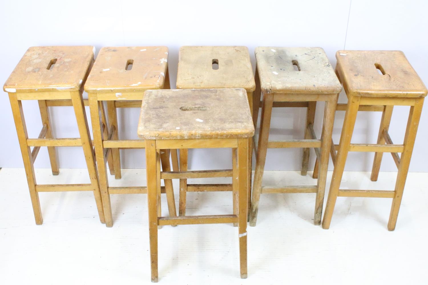 Set of six mid Century vintage wooden lab stools stamped Gom...