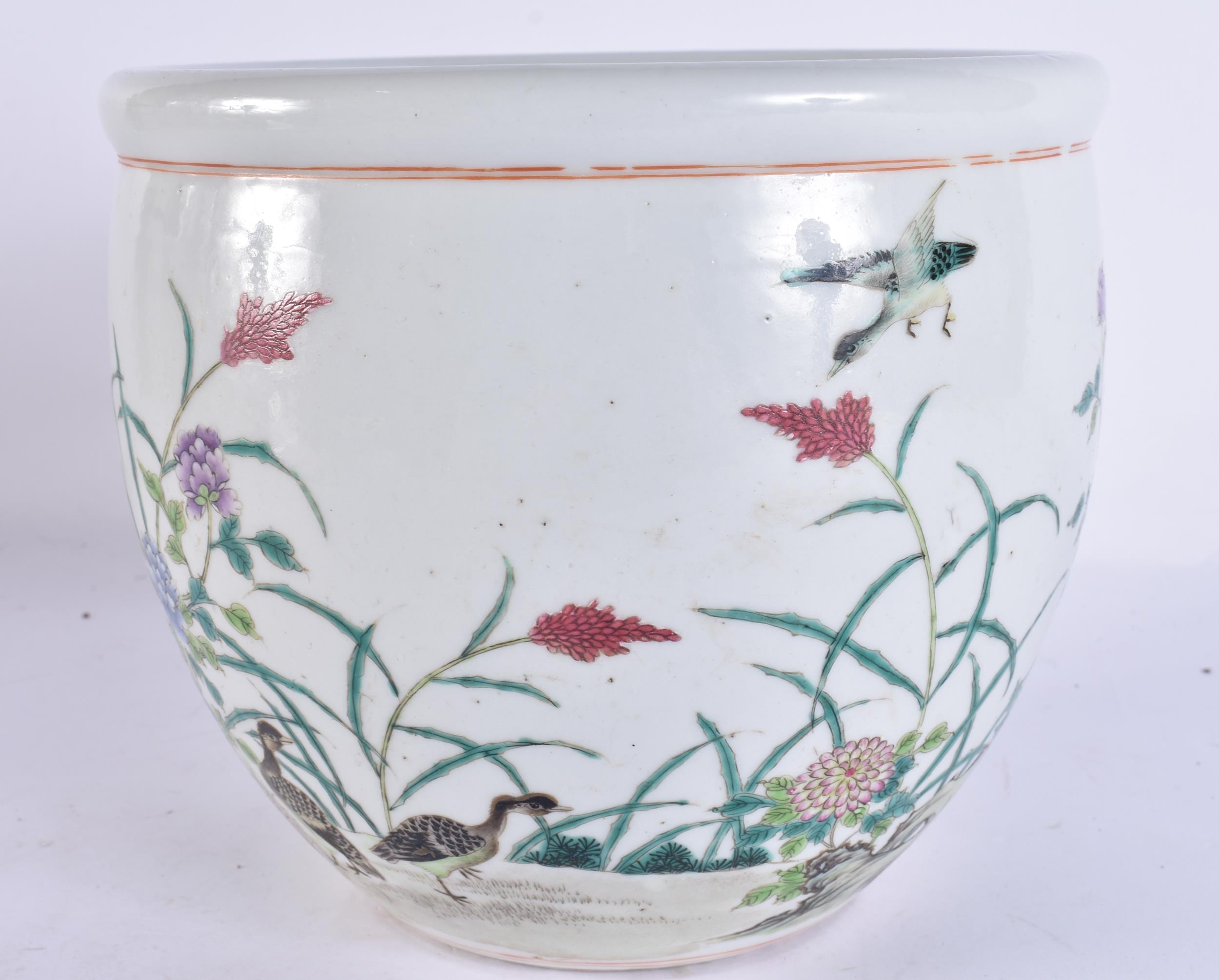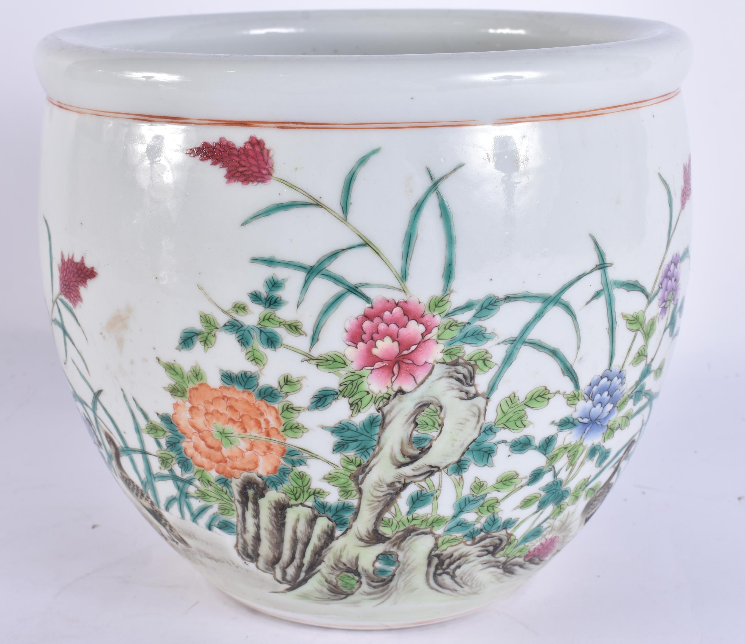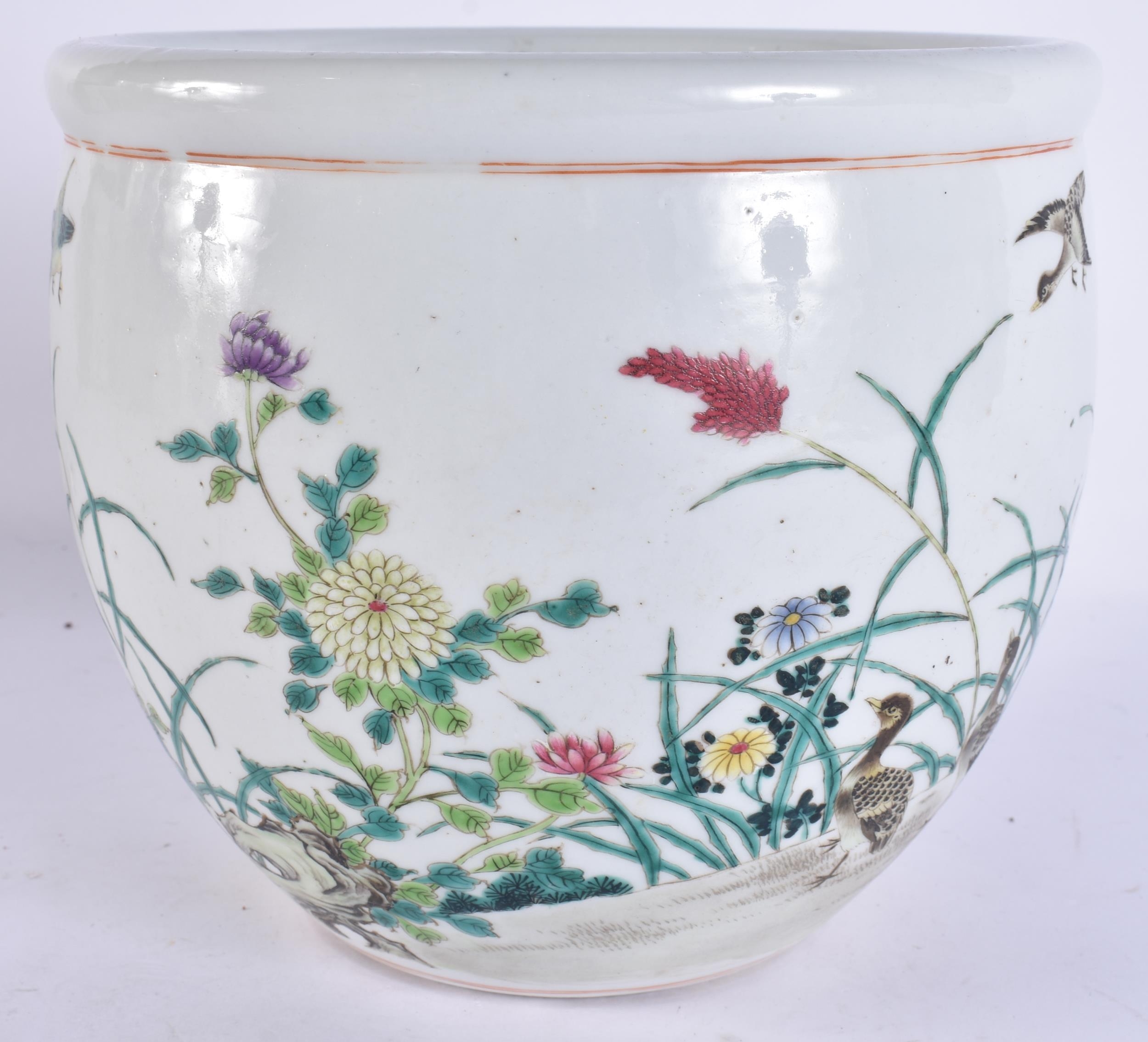 AN EARLY 20TH CENTURY CHINESE FAMILLE ROSE JARDINIERE Late Qing/Republic, of small proportions, painted with geese and foliage. 20 cm x 18 cm.