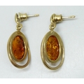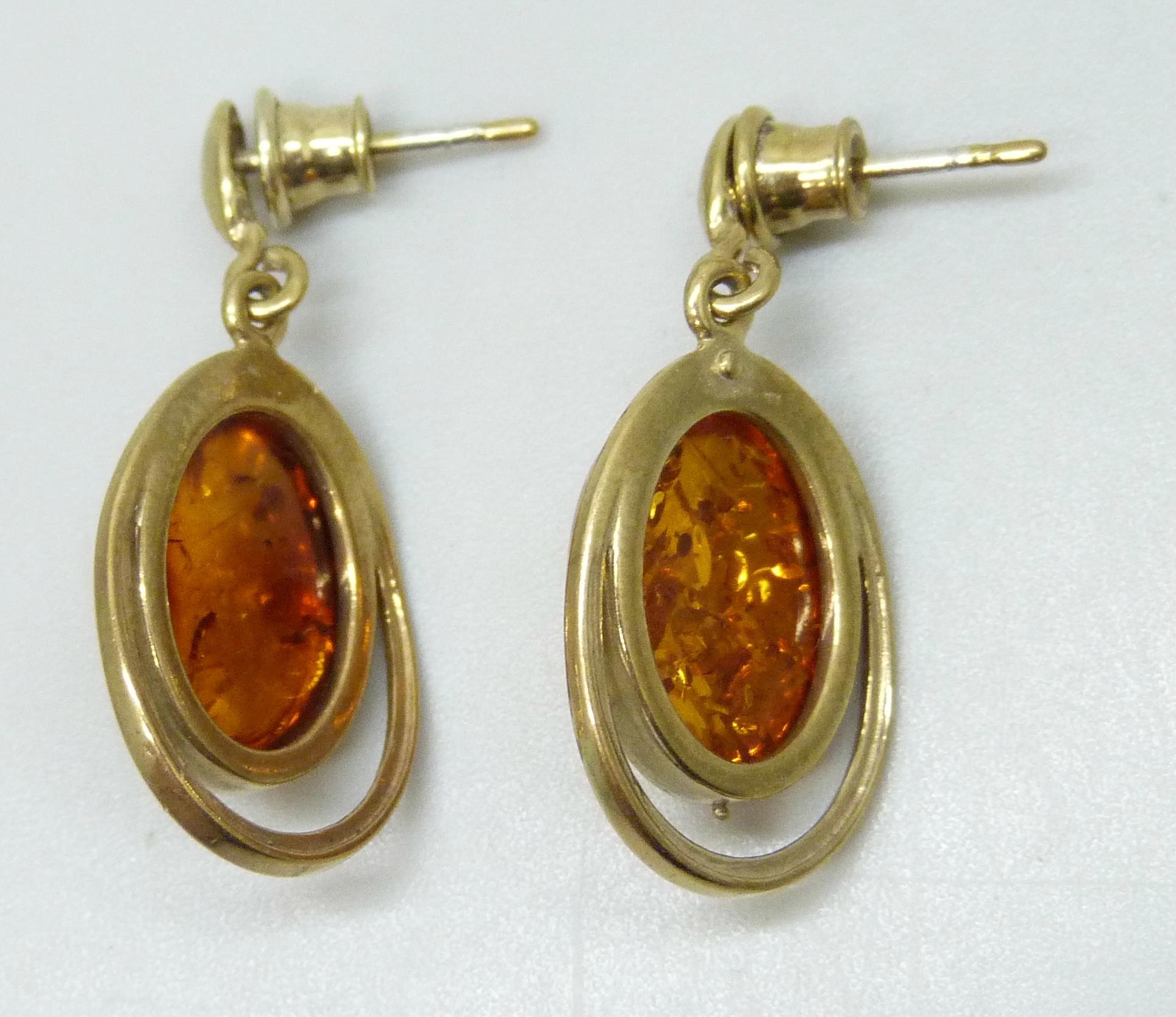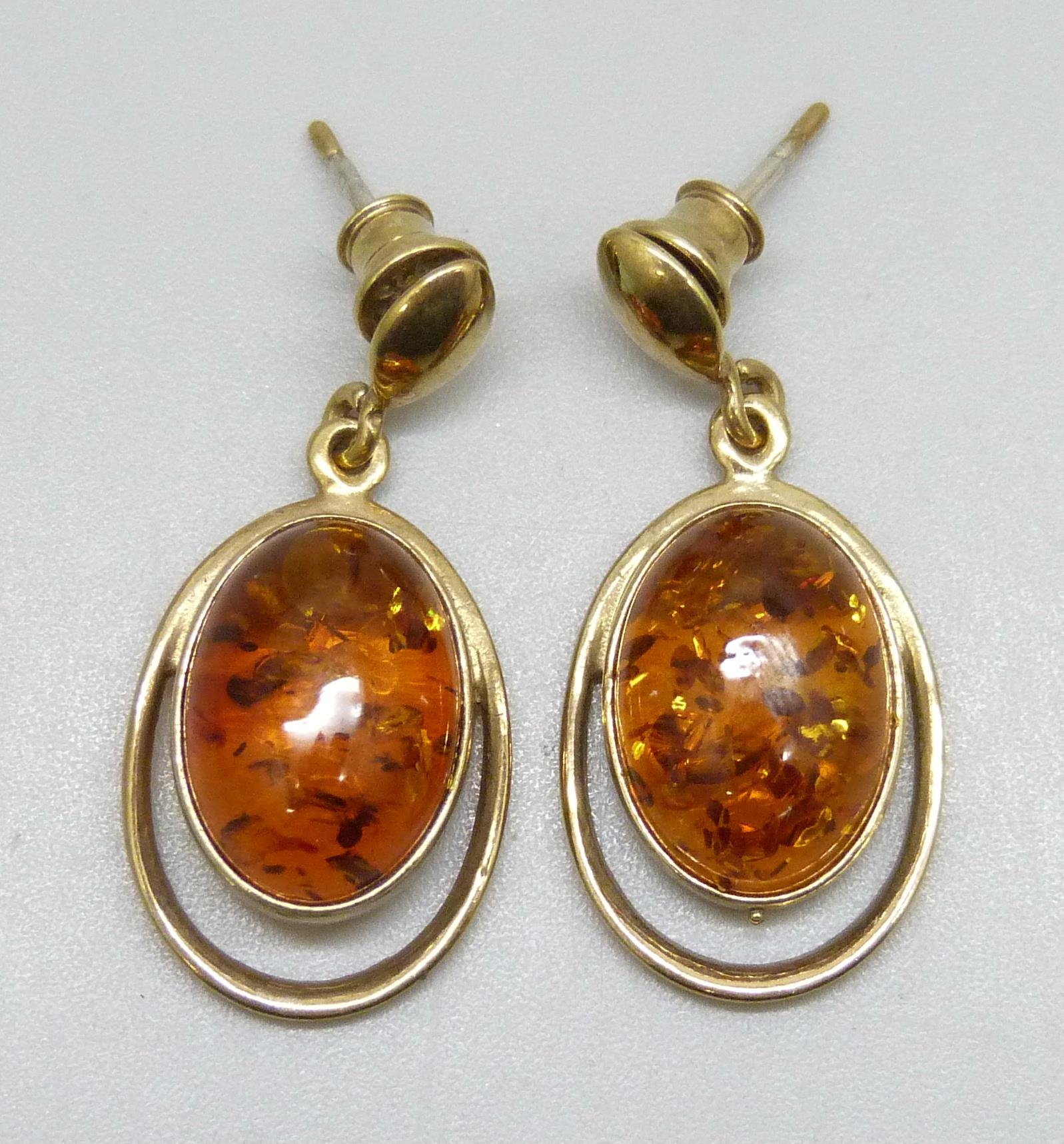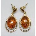 A pair of silver gilt cabochon Baltic amber earrings, plated backings, 3.3cm
