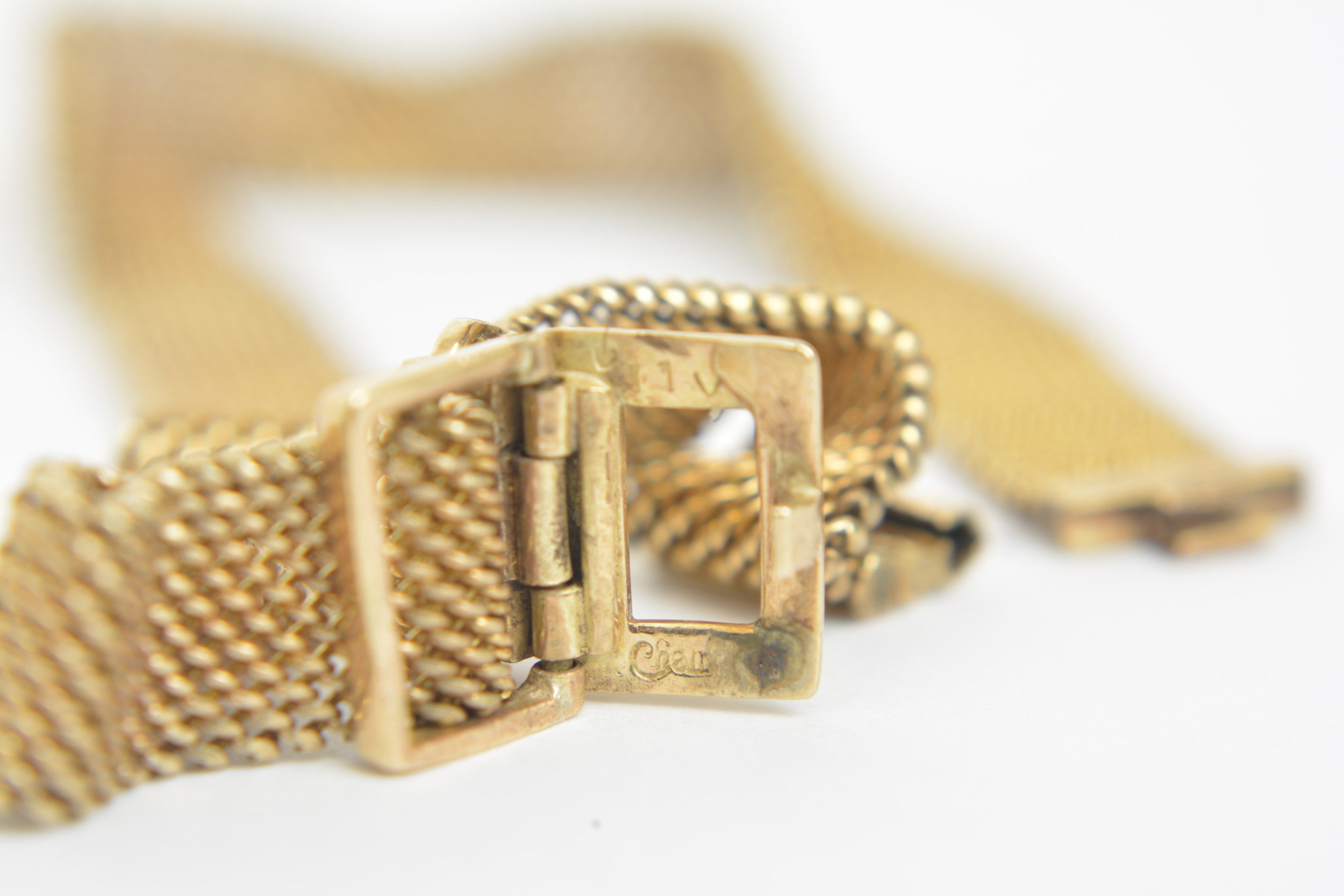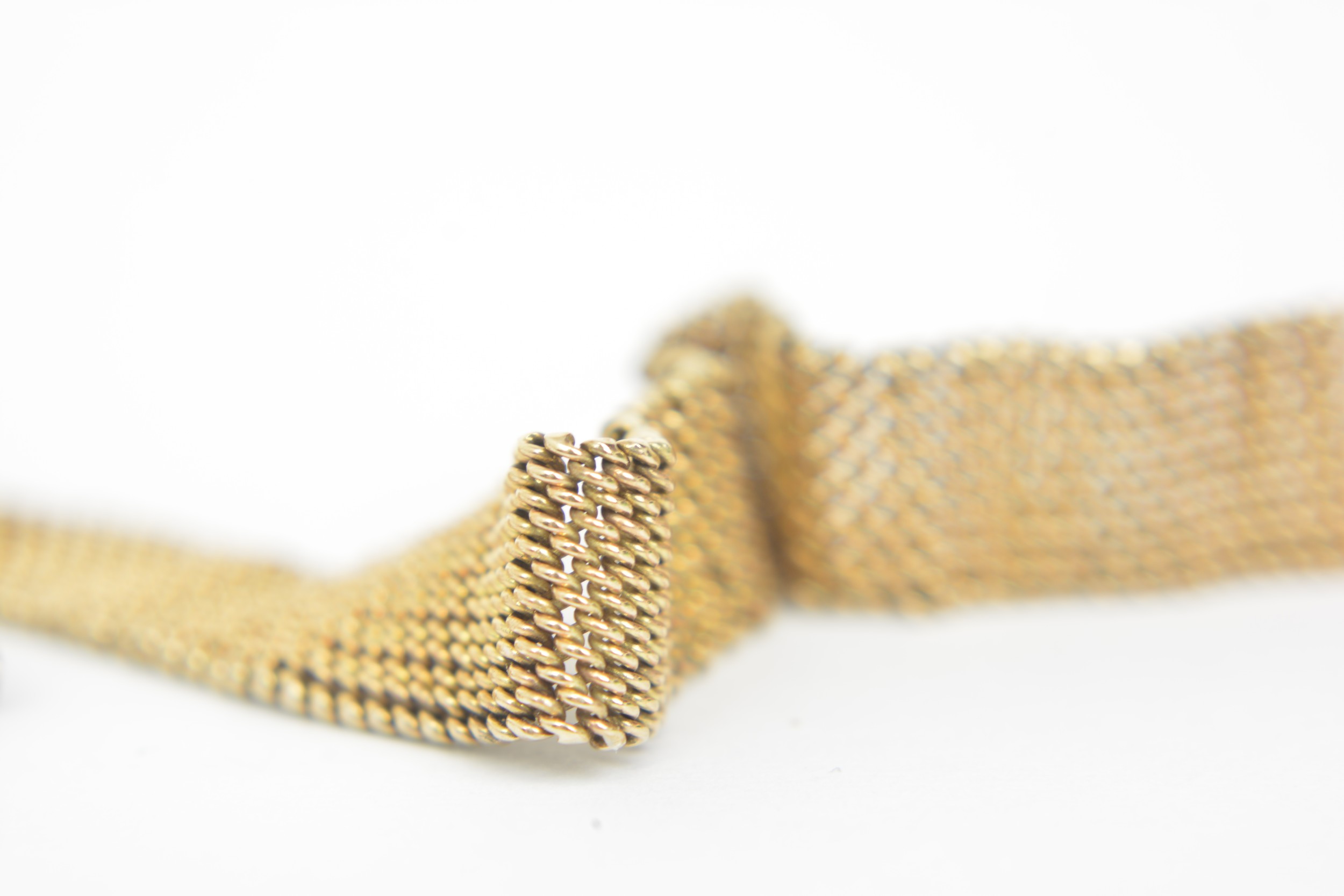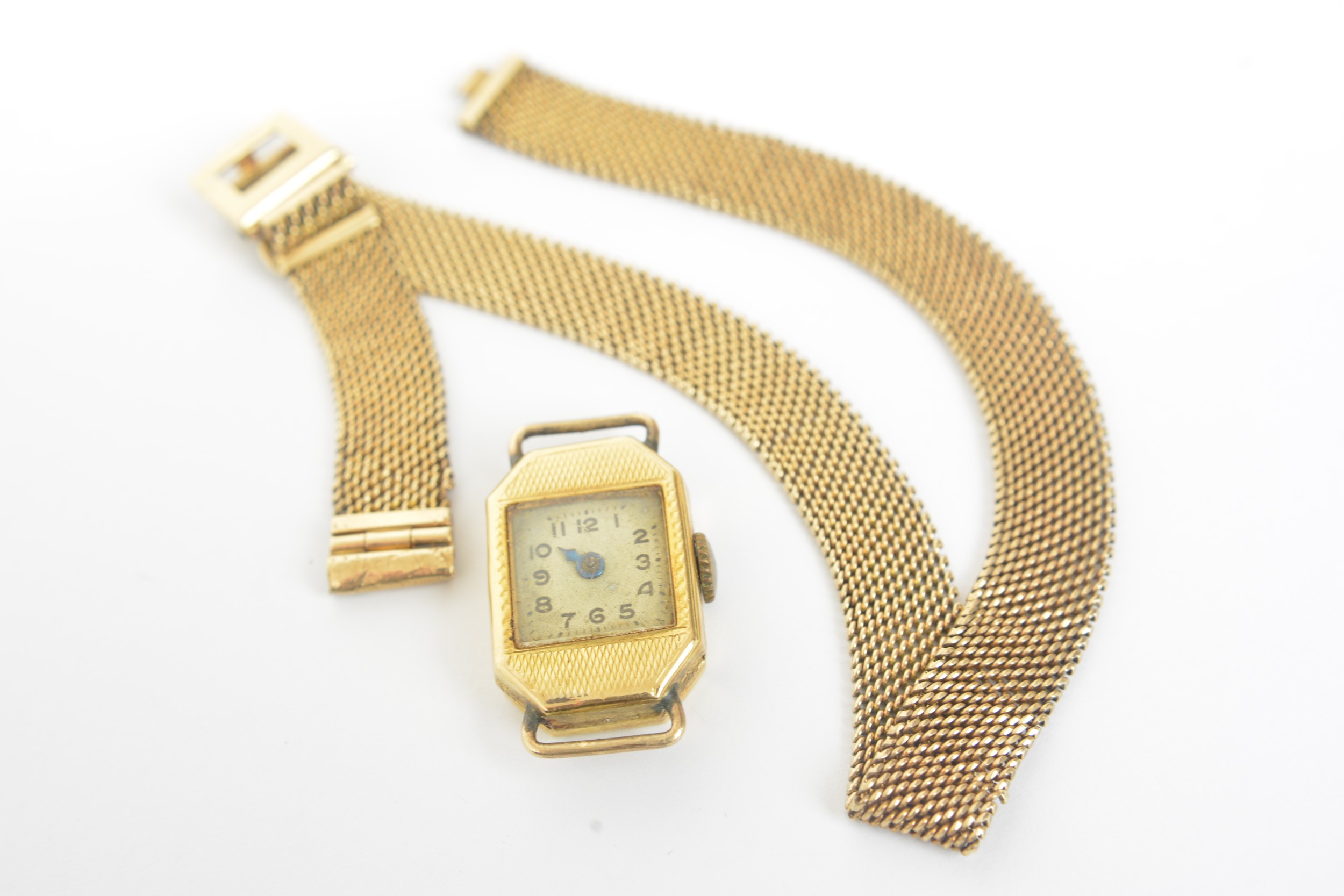 Vintage 9ct gold cased cocktail watch with gold woven design strap. In need of repair. 16.6g combined gross weight (strap weight is 10.25g)