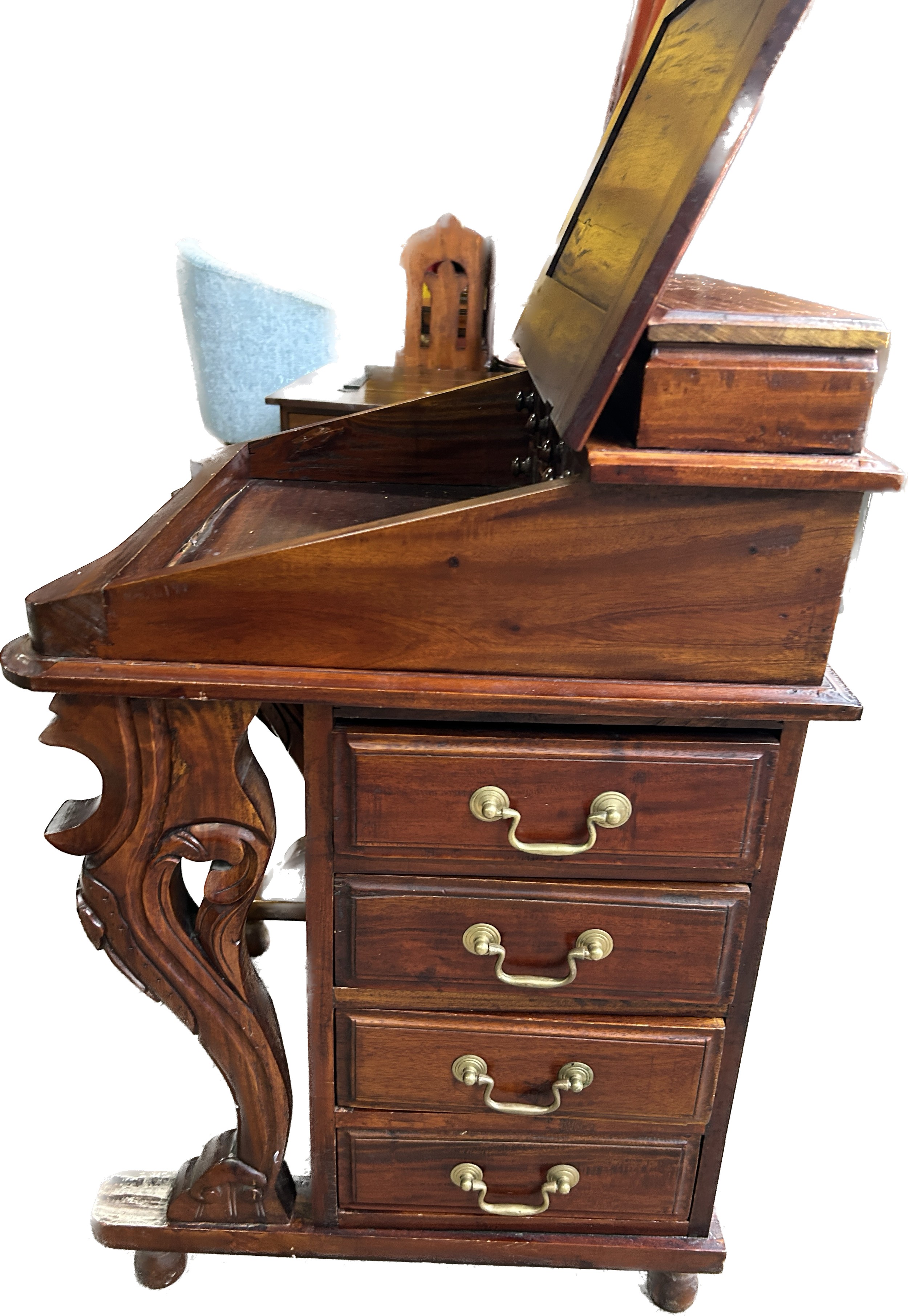 Reproduction davenport, approximate measurements: Height 33 inches, Width 21.5 inches, Depth21 inches