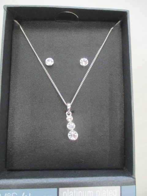 PLATINUM PLATED M&S NECKLACE AND EARRING SET, BOXED