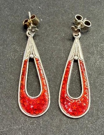 Jewellery : Pair of Silver and enamel Danish earrings by Meka