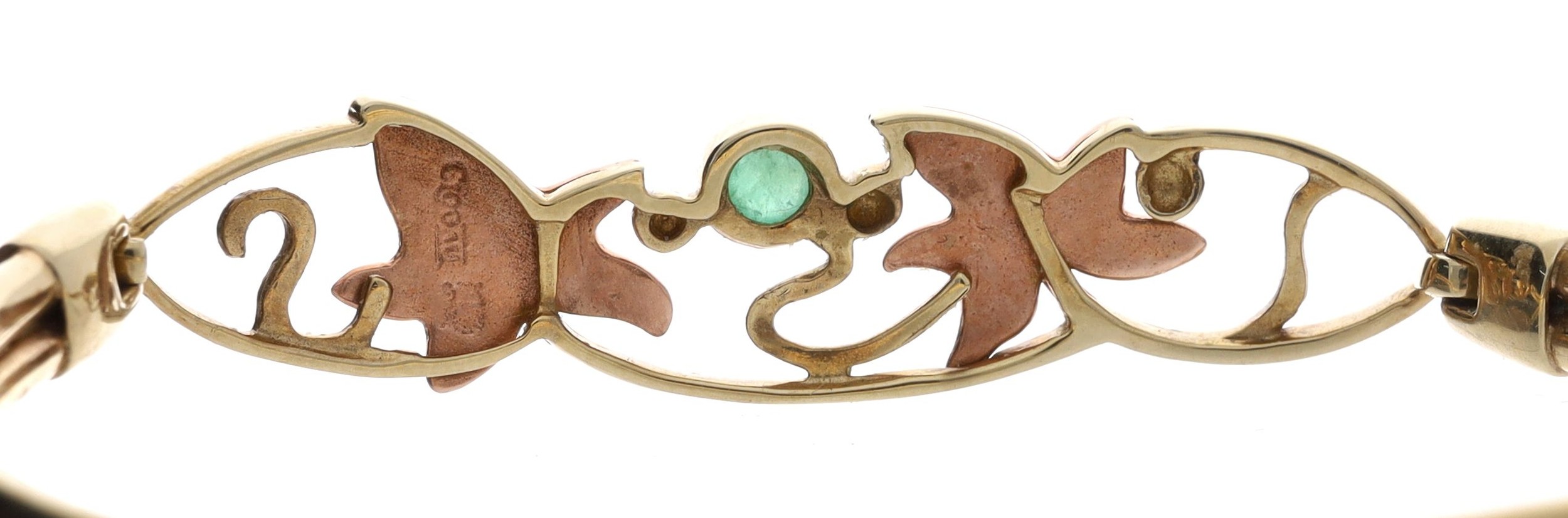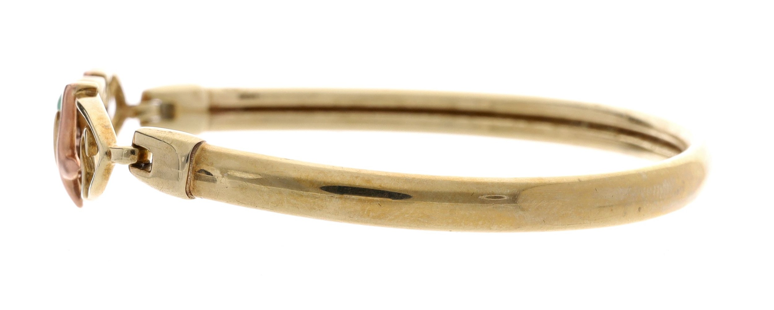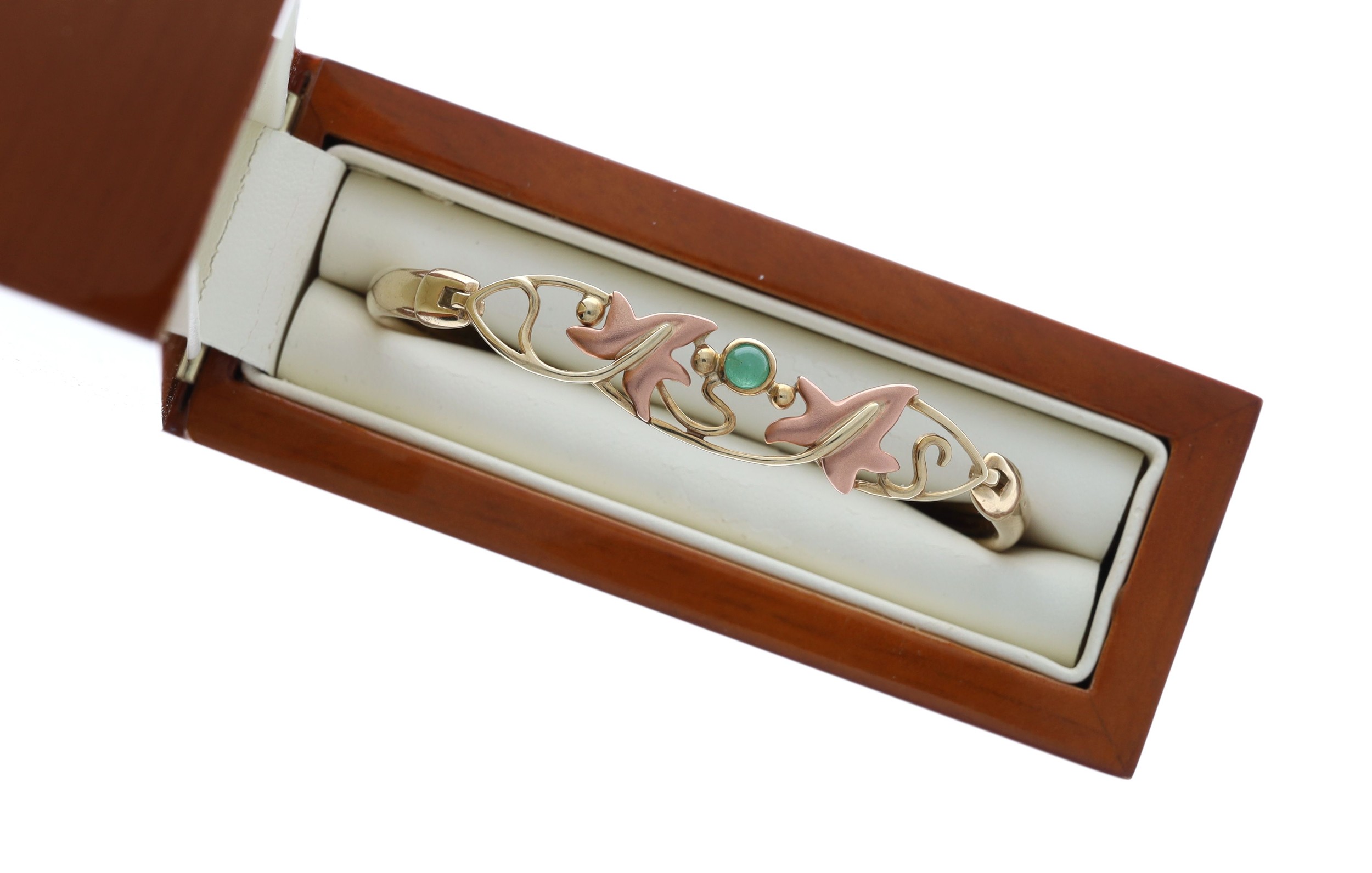 Clogau Welsh Gold 9ct single cabouchon green gem set hinged bangle, 13.0gm, with Glogau Gold box