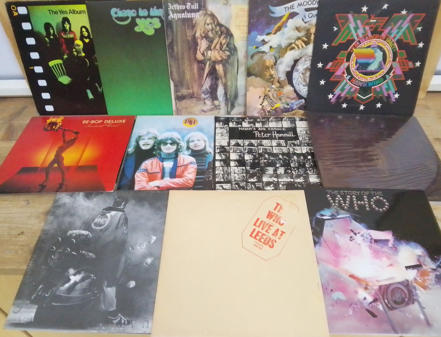 Twelve assorted LPs including The Who, Yes, Be-Bop Deluxe, Hawkwind etc.