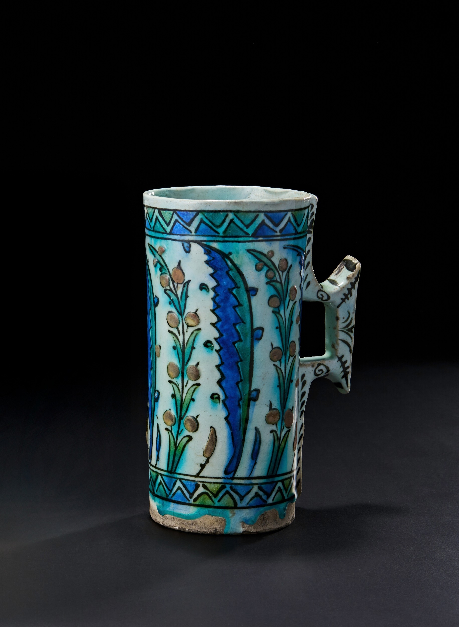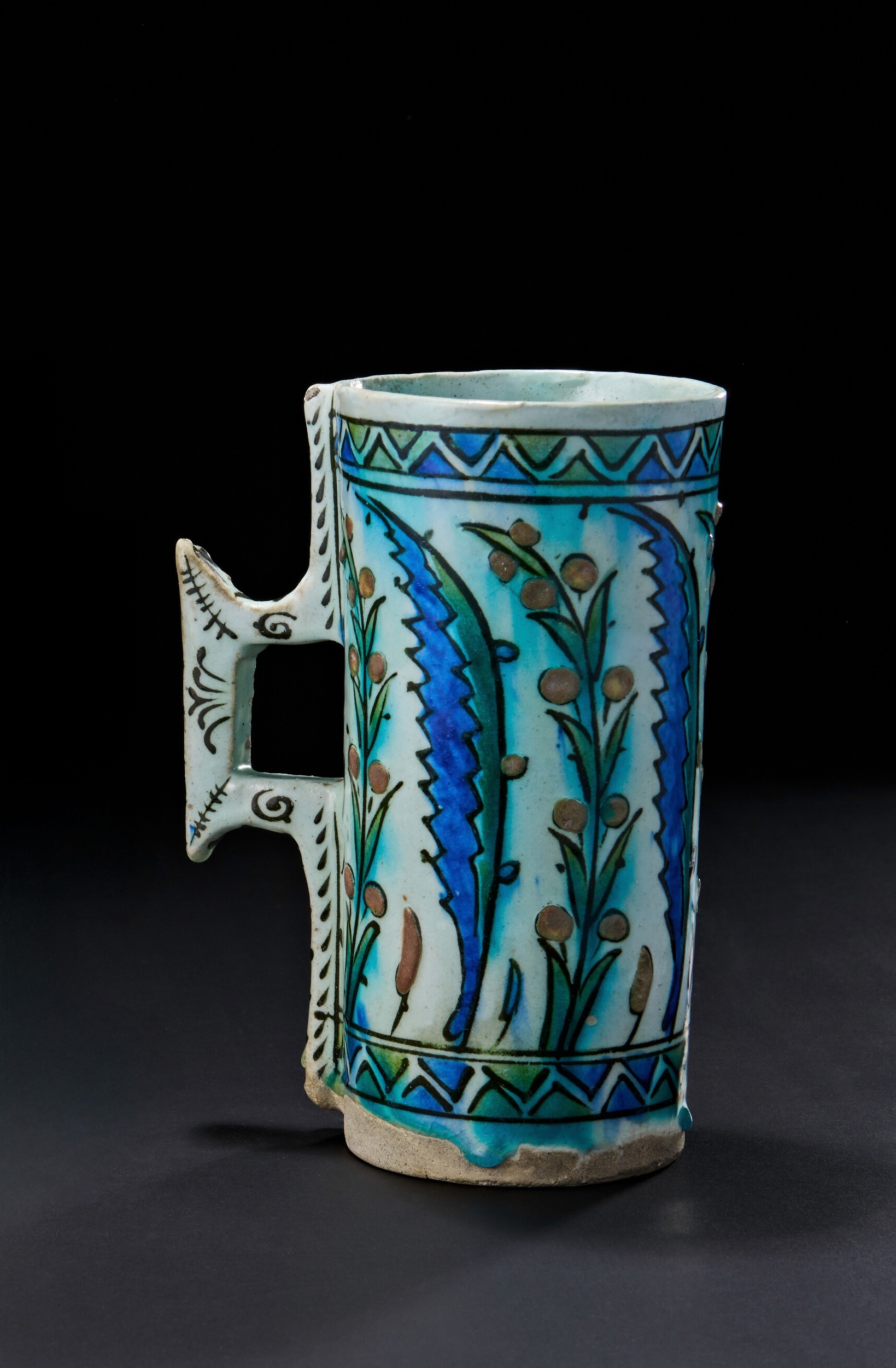 AN IZNIK POTTERY TANKARD, OTTOMAN TURKEY, 17TH CENTURY
