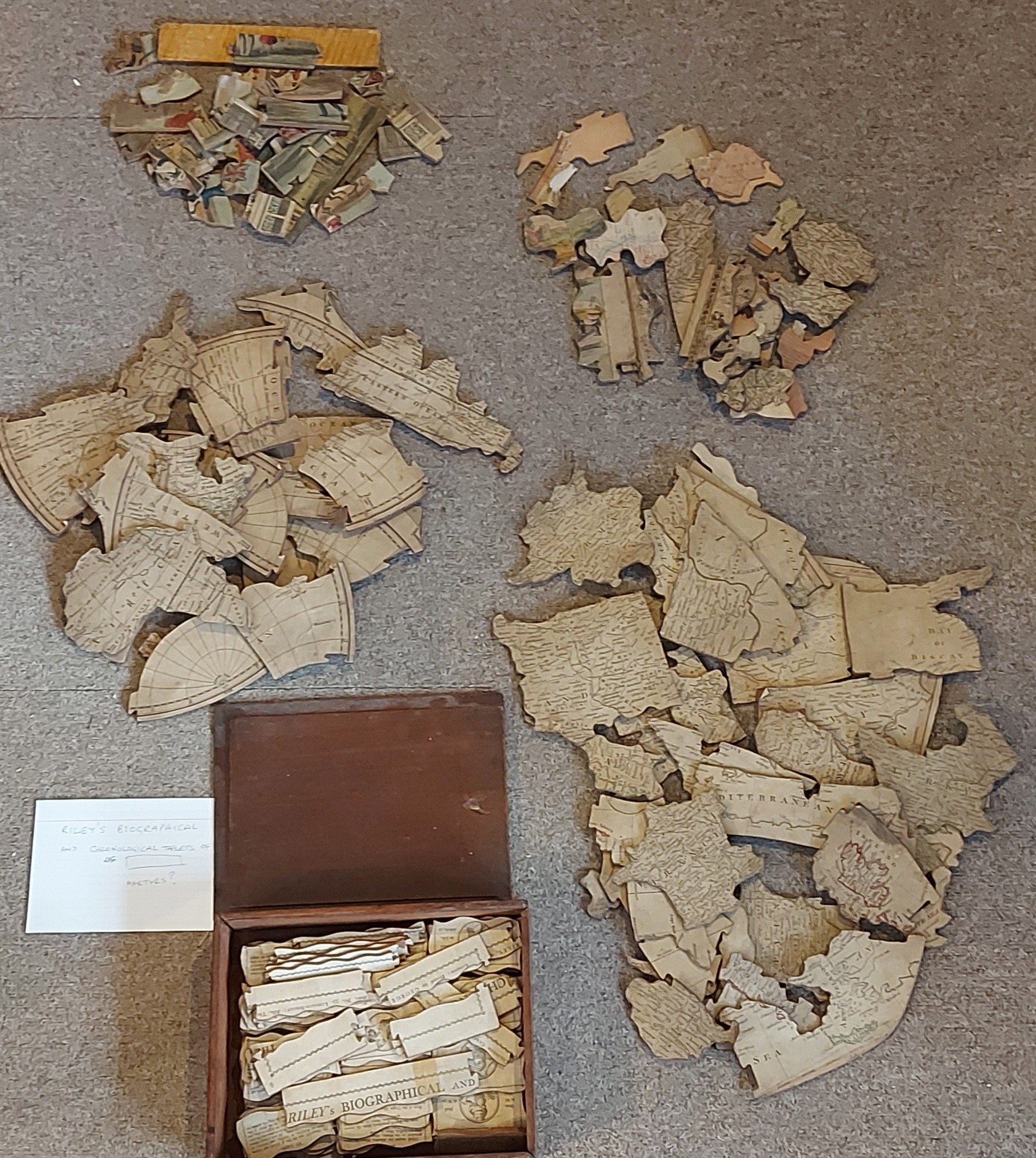 An early Jigsaw puzzle Rileys Biographical and Chronological Tablets of Grecian History together with two early wooden puzzles in the form of maps