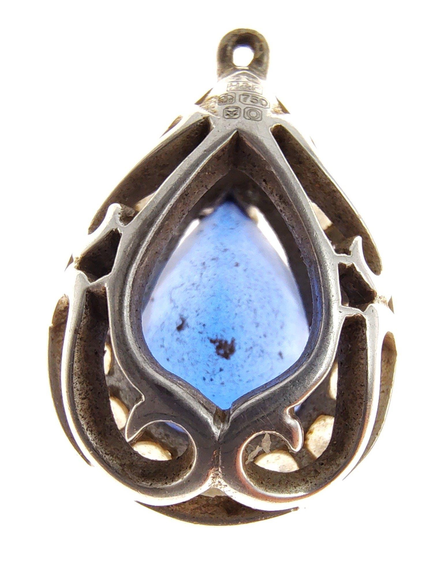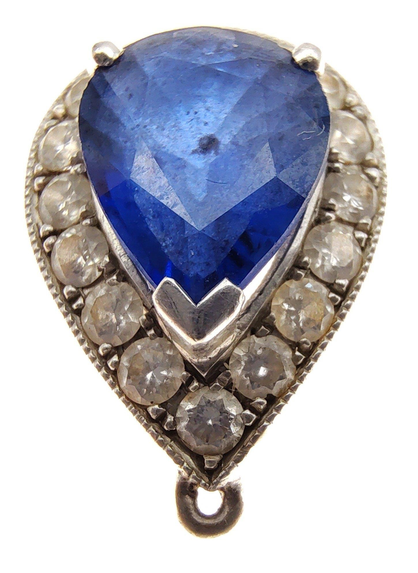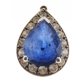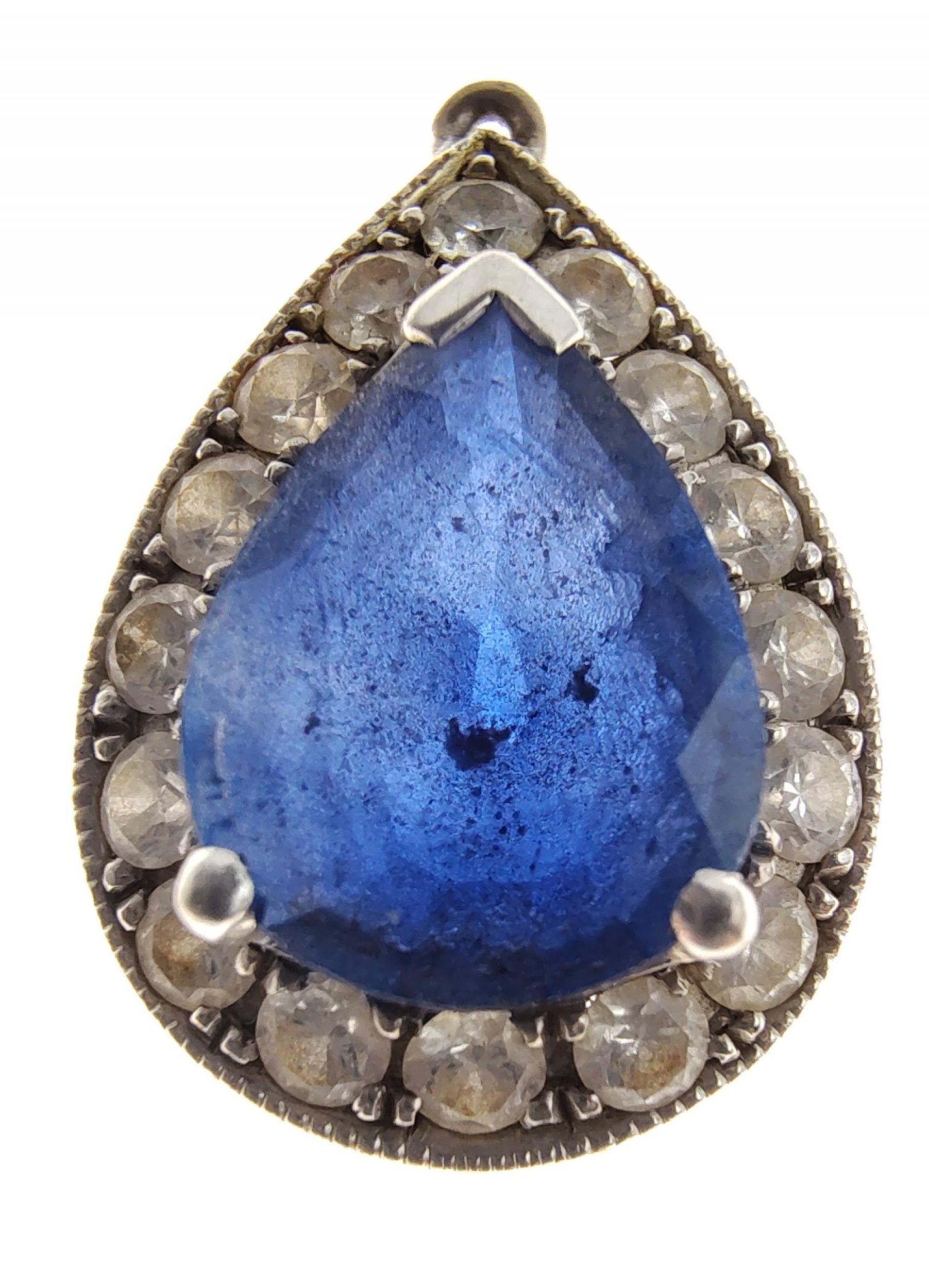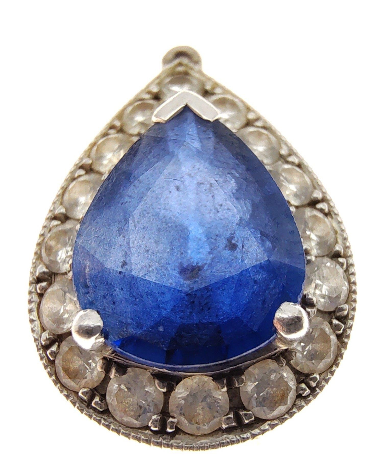 A nice quality 750 stamped white gold and DIAMOND tested pendant with a blue sapphire centred - gross weight 1.93g approx