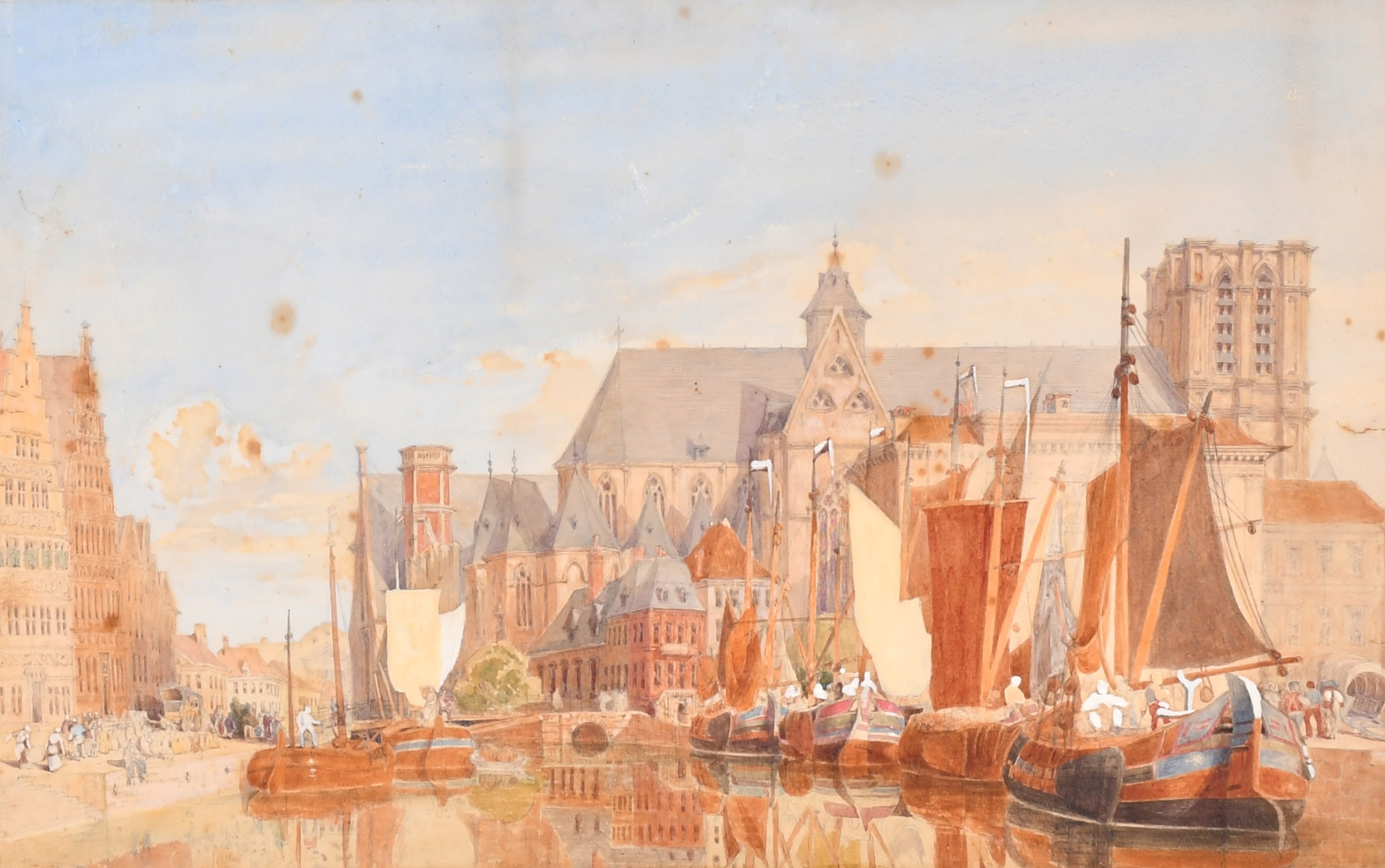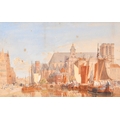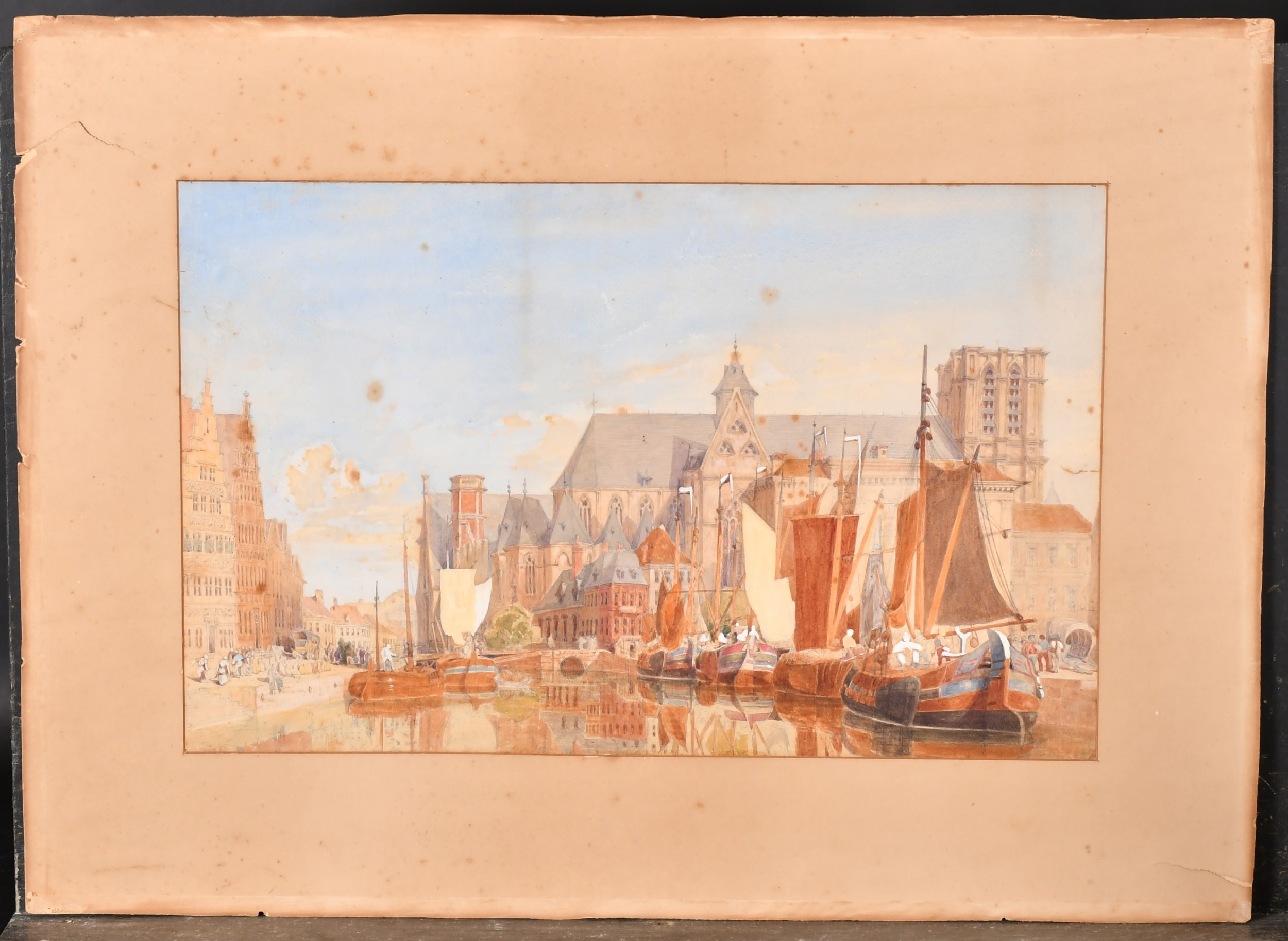 19th Century English School. A Dutch Canal Scene, Watercolour, Unframed, 12.5" x 20" (31.7 x 50.8cm)