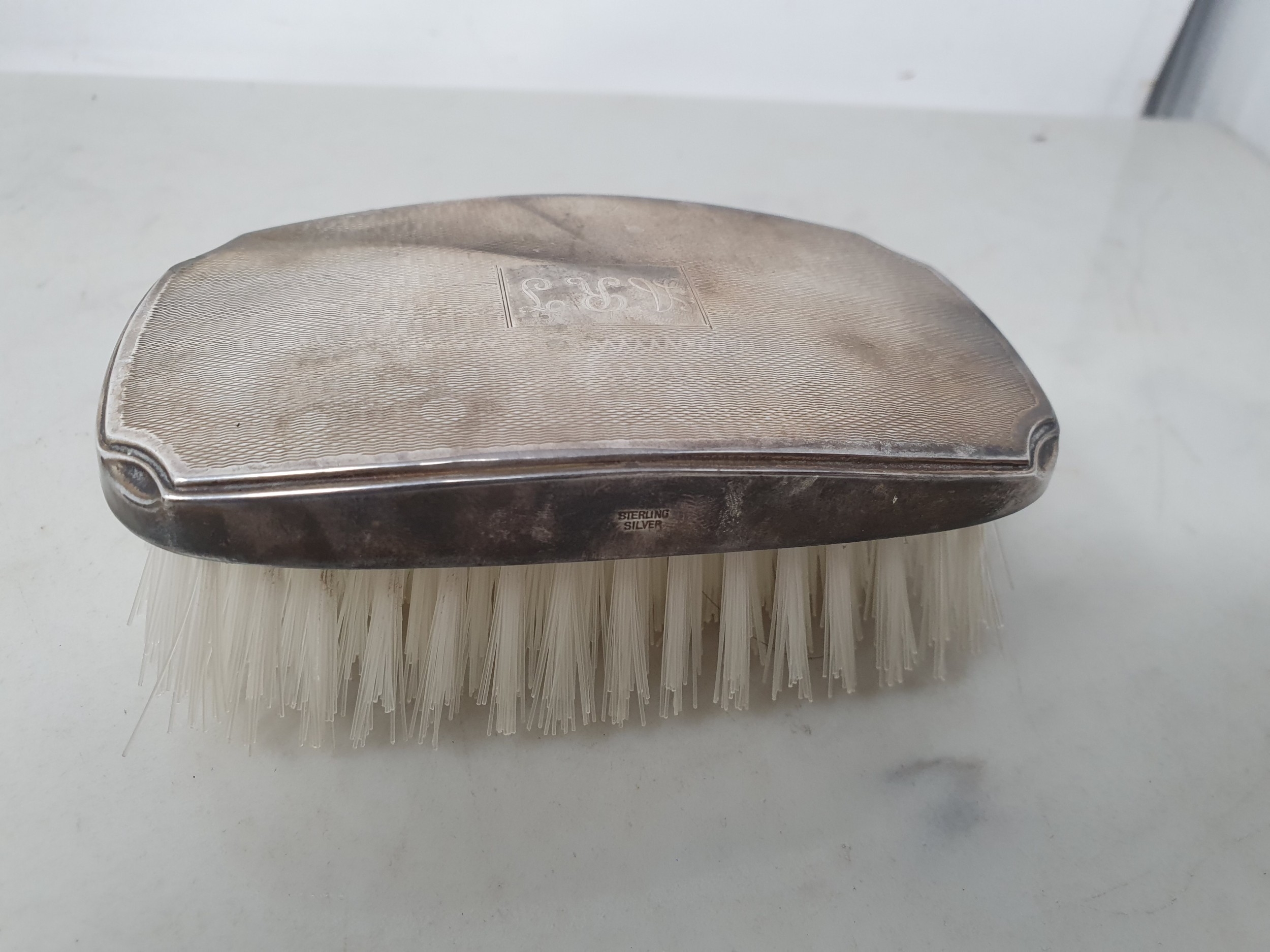 A modern silver mounted Hair Brush engraved initials
