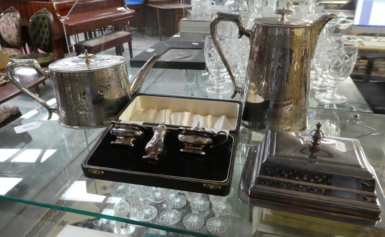 Silver Plated Coffee Pot, Tea Pot, Condiment Set & Butter Dish