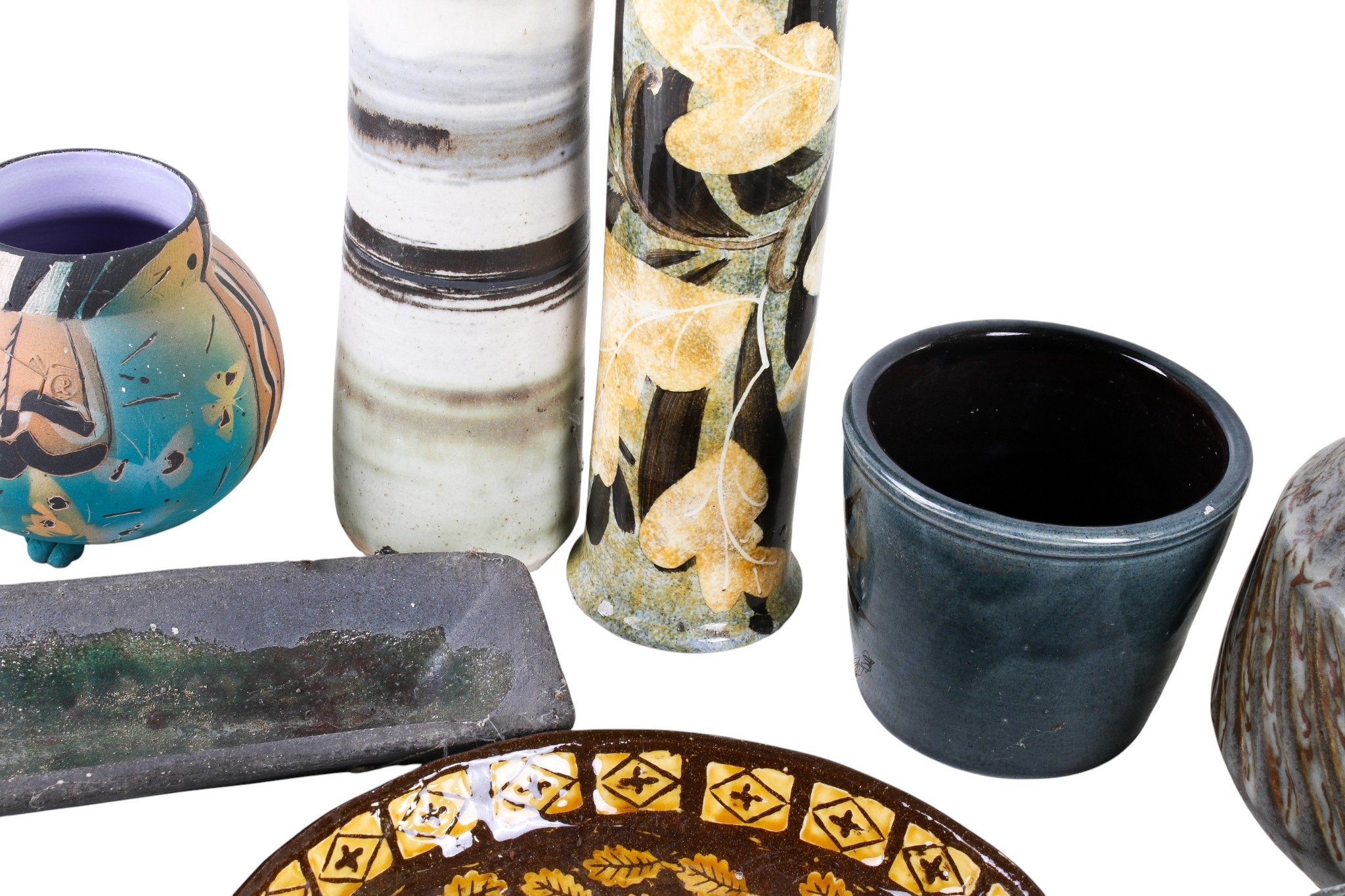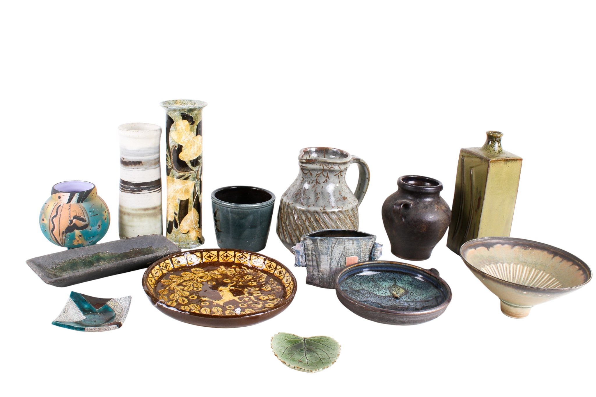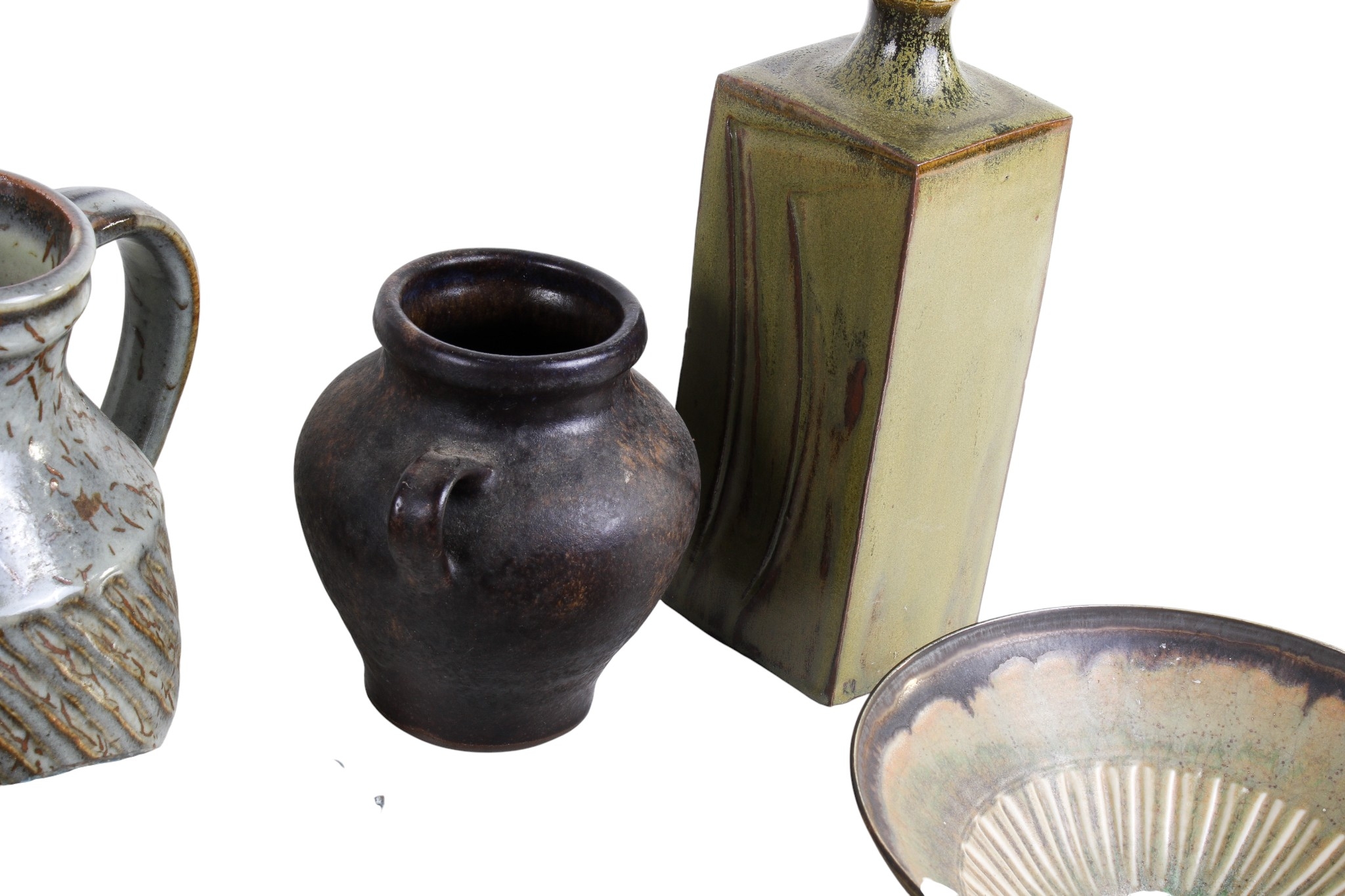 A collection of assorted Studio Art Pottery items. Including a jug, vases and bowls, etc. Max. H27cm