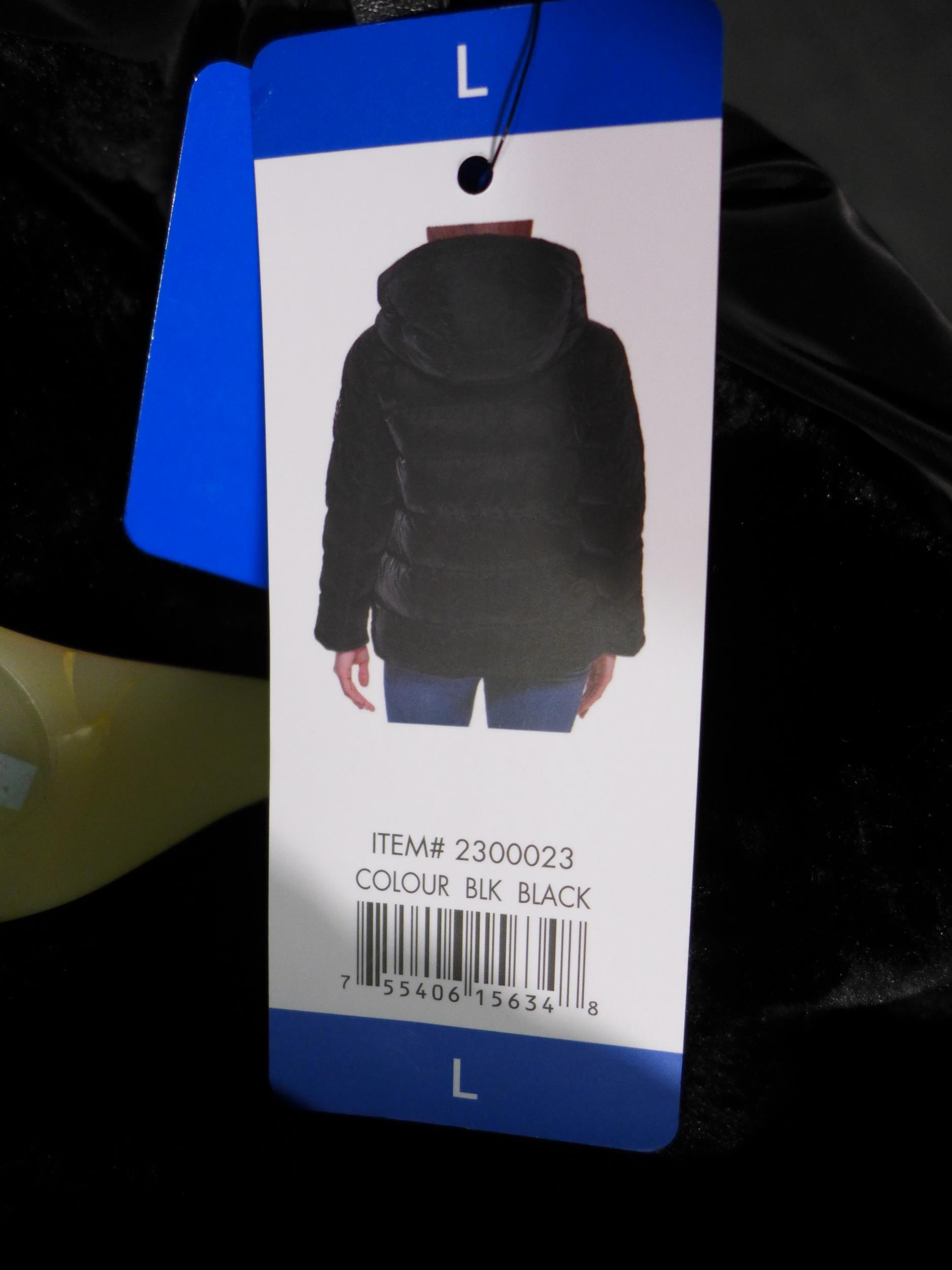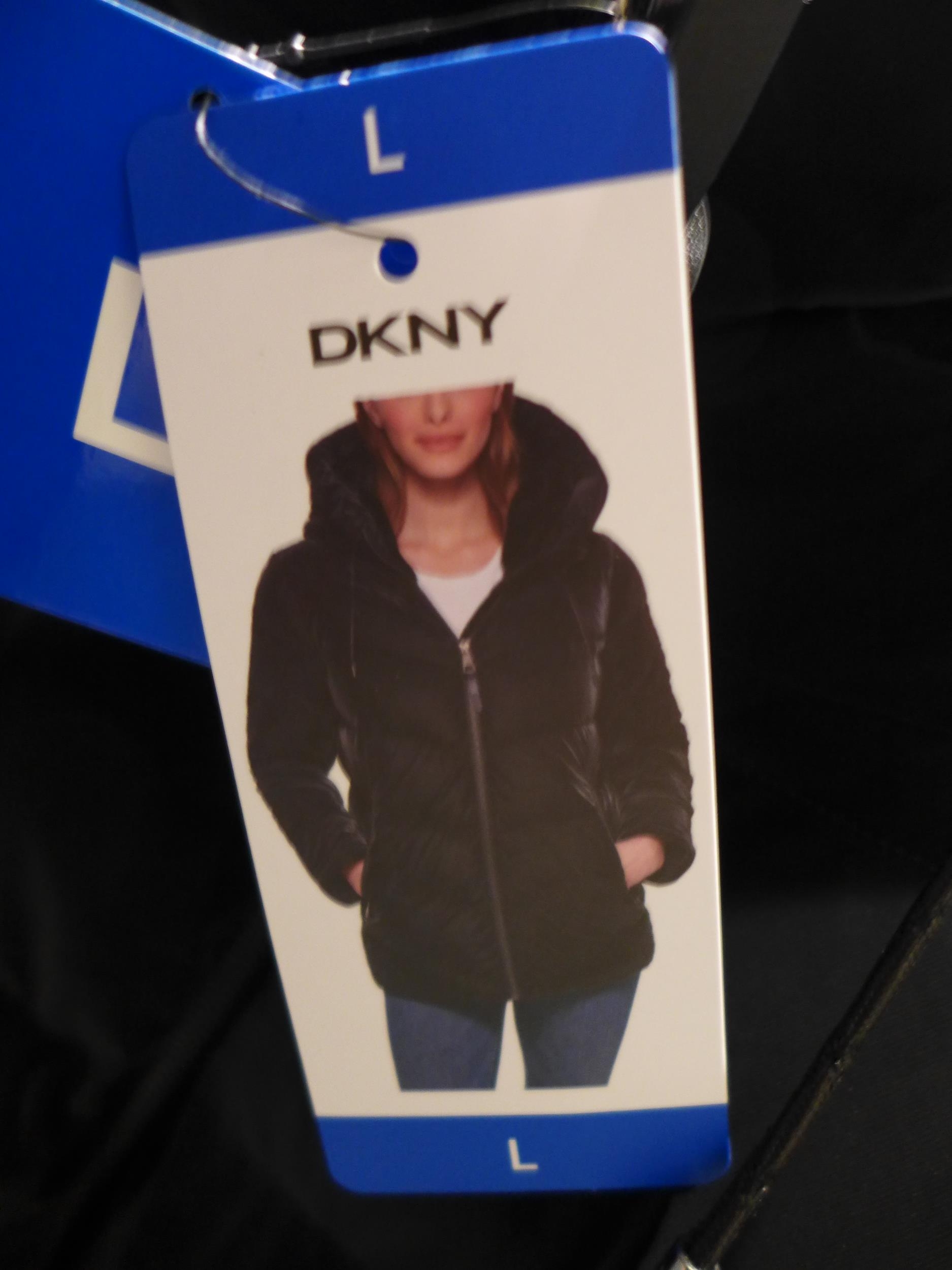 Ladies DKNY black hooded coat - size L *This lot is subject...