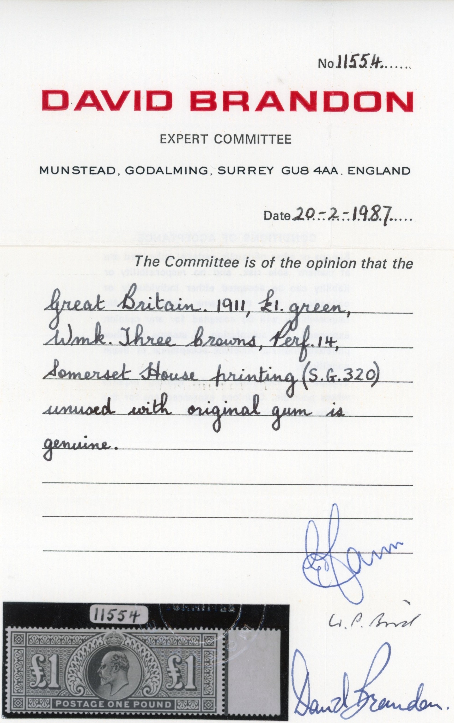 GB: 1911-13 Somerset House 2s6d dark purple, 5s carmine, 10s blue and ��1 deep green; all mint large part og (5s unmoun