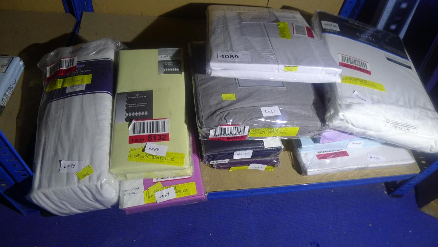 A quantity of various bedding in various sizes, contents of one shelf