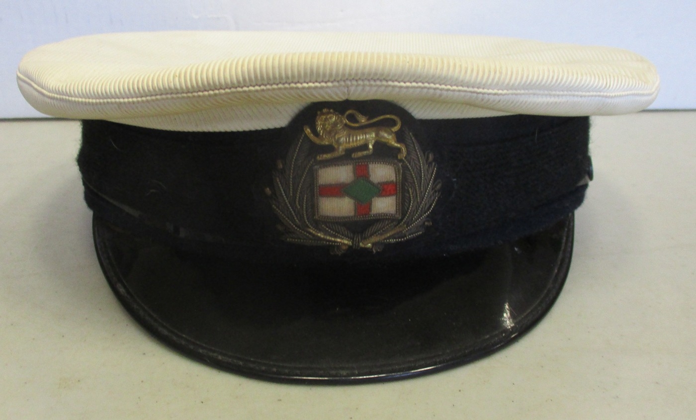 British Petroleum merchant fleet Engineering Officer's uniform, circa 1950s-60s with tunic jacket and peaked cap with BP bullion embroidered cap badge, generally very fine. The uniform belonged to the vendor's father Peter John Hussey. (B)