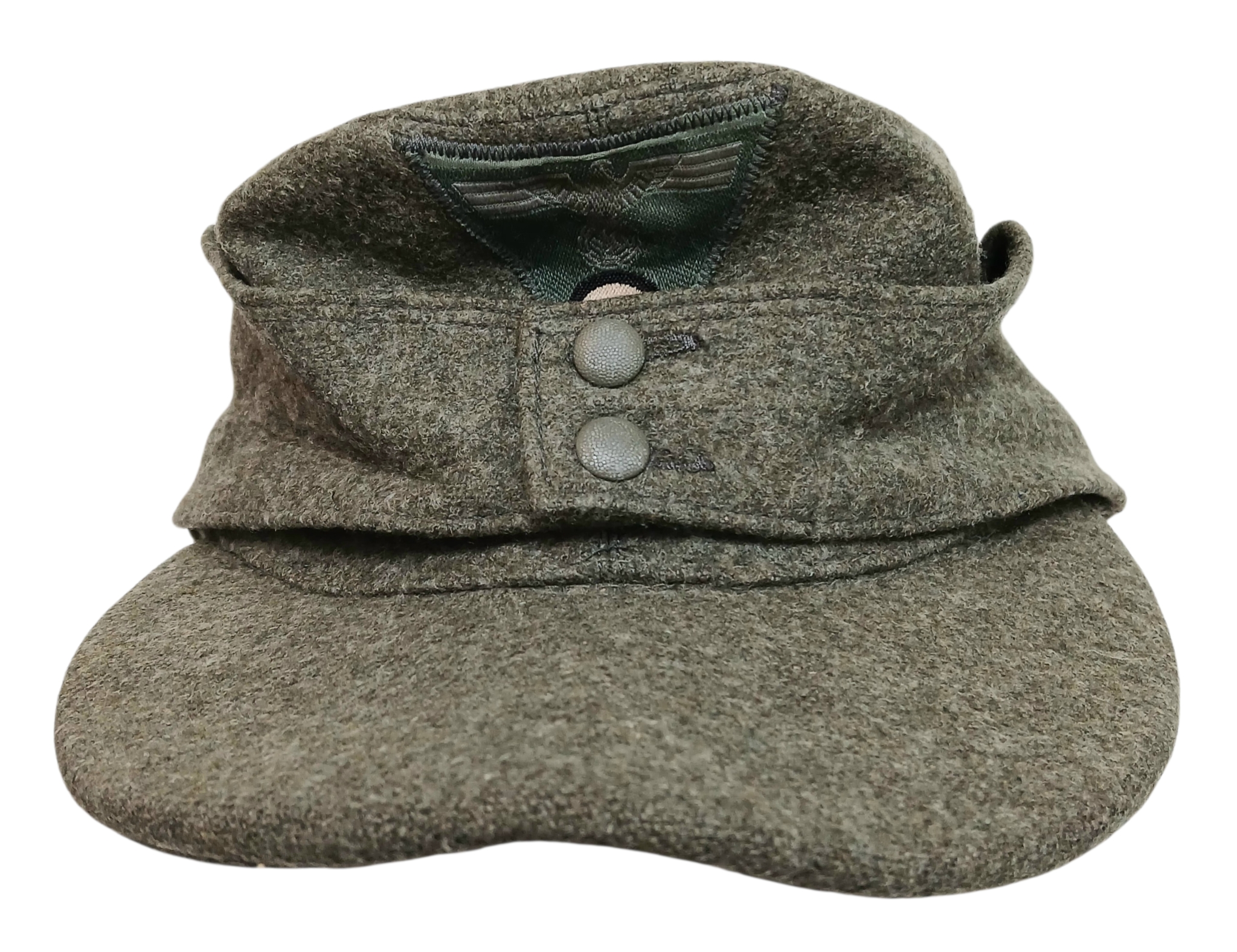 Late WW2 German Ersatz M43 Cap. This is a Forced Labour Camp made cap where they recycled old uniforms and blankets into hats and caps etc.