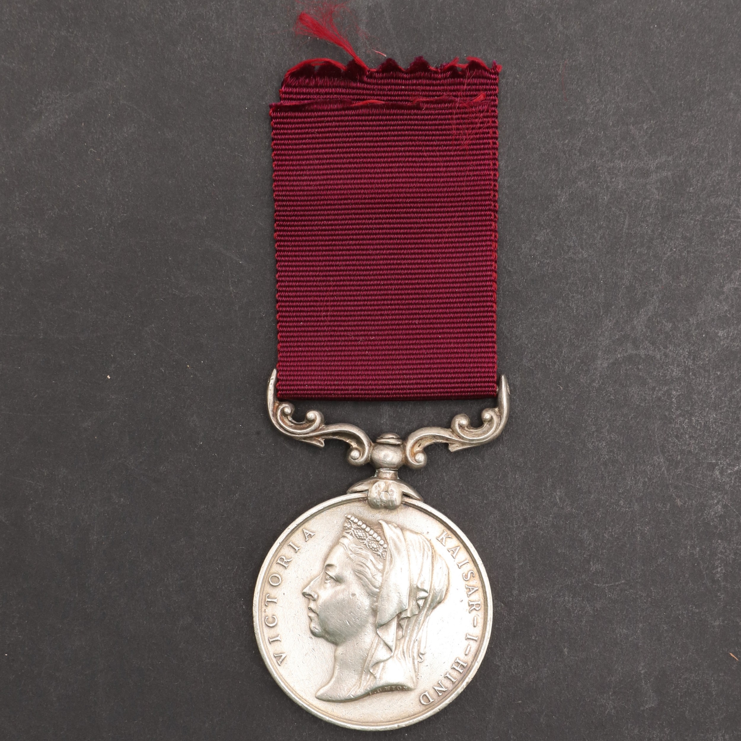 AN INDIAN ARMY LONG SERVICE AND GOOD CONDUCT MEDAL TO THE GURKHA REGIMENT. A Victorian, veiled bust, Indian Army Long Service medal named in engraved script to 2018 Naik Ranbir Newar 1/4th Batt Gurkha Regt.
