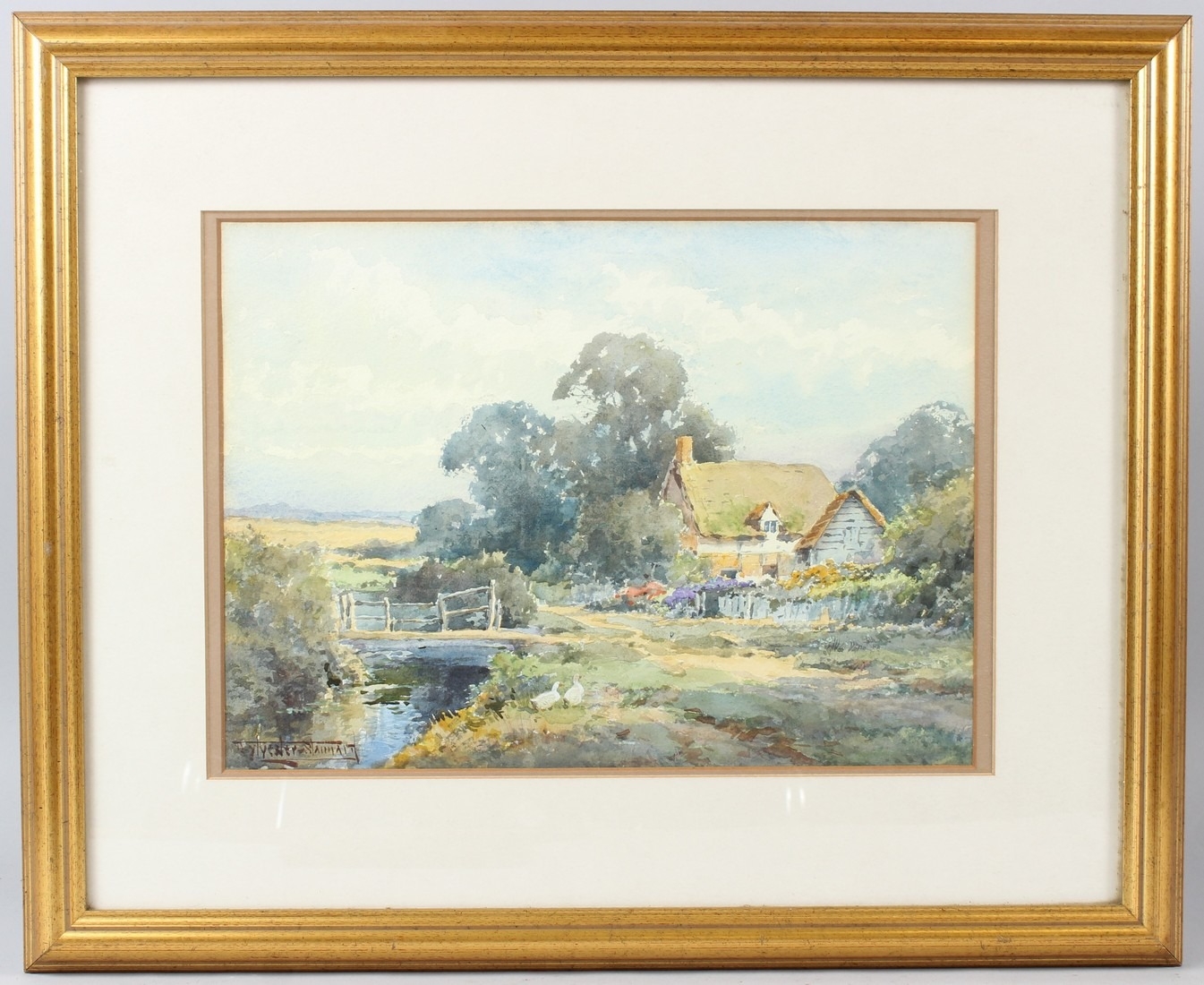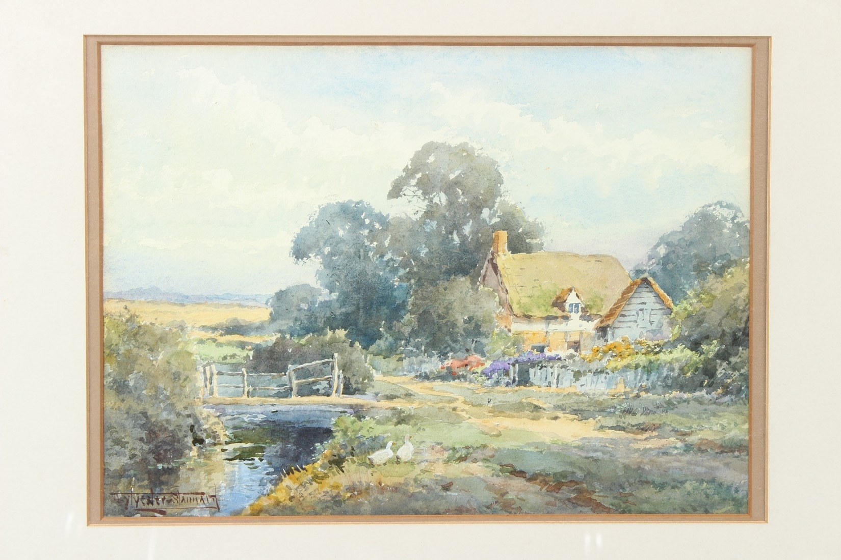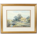 HENRY JOHN SYLVESTER STANNARD (1870-1951) Landscape with cottage and stream watercolour signed 26 x 36cm