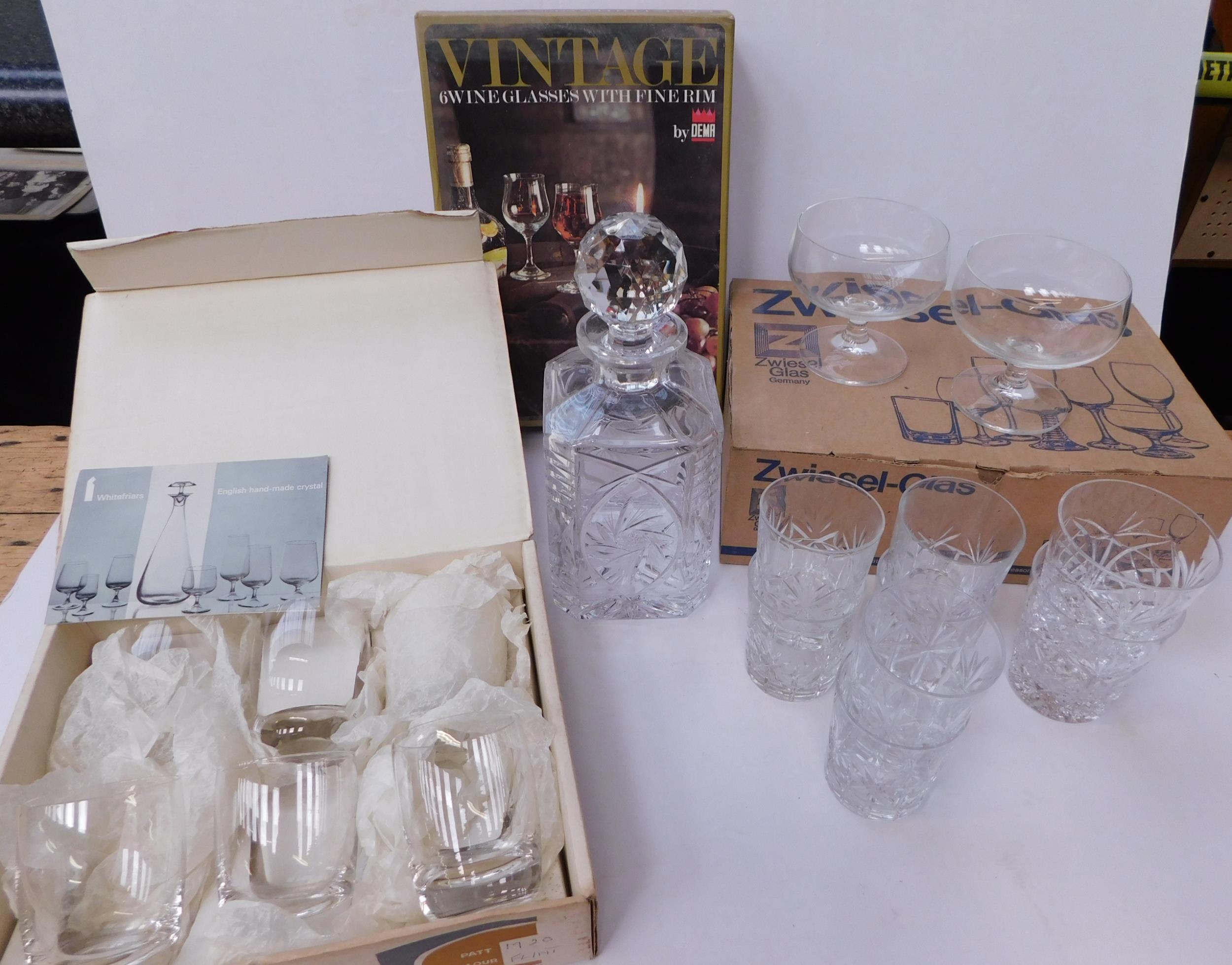 Glassware including - Whitefriars & American crystal decanter/glasses
