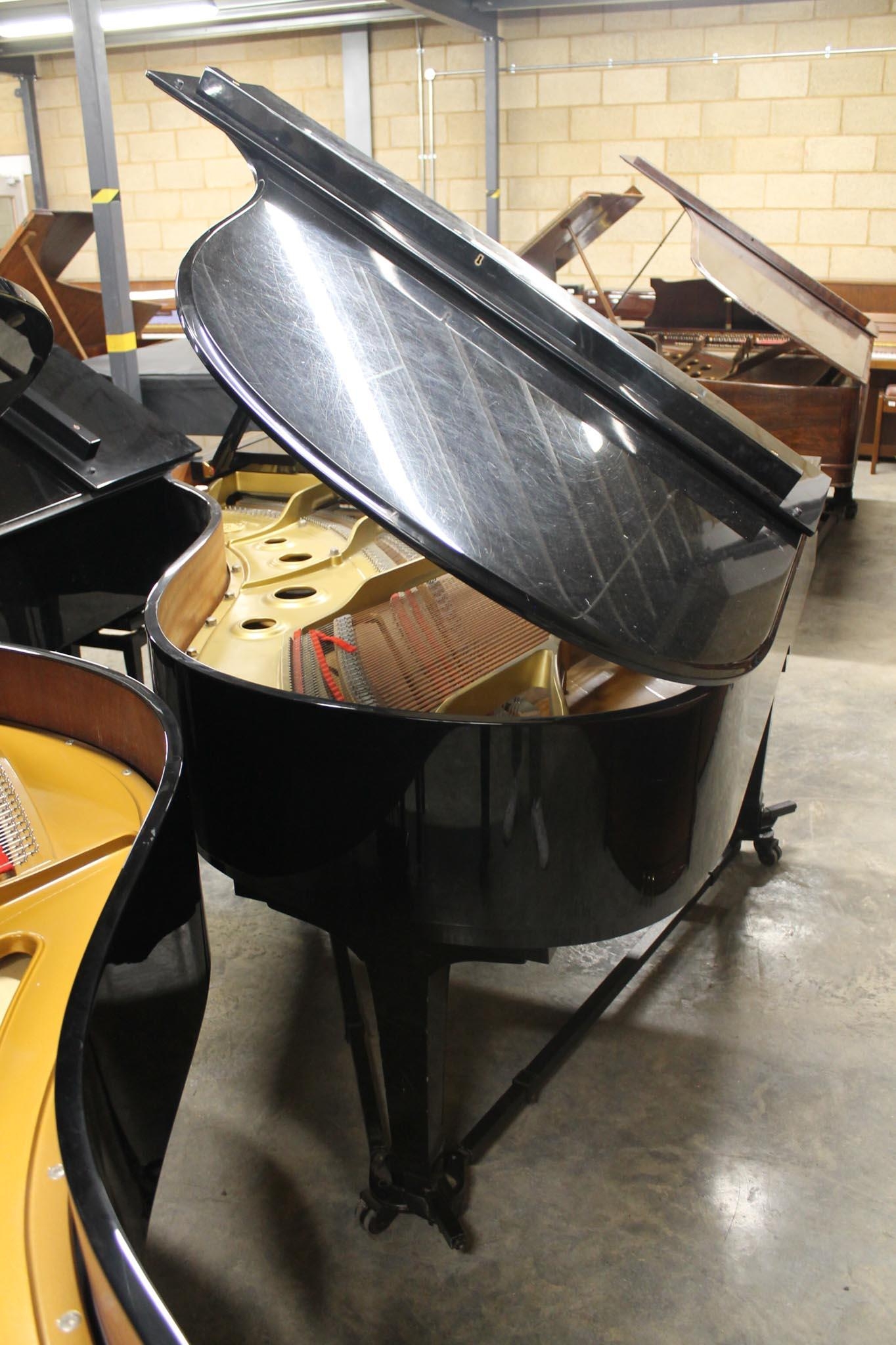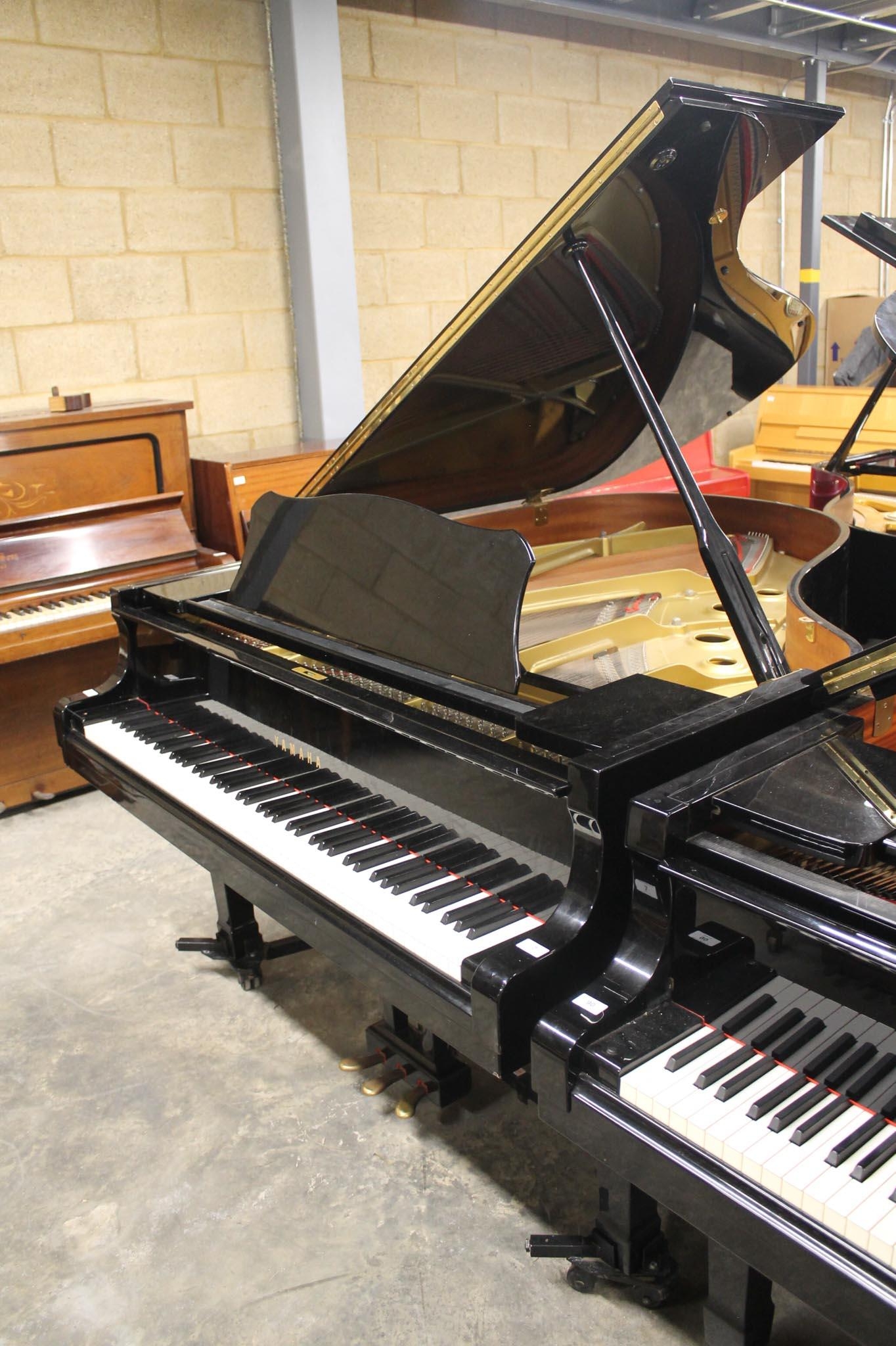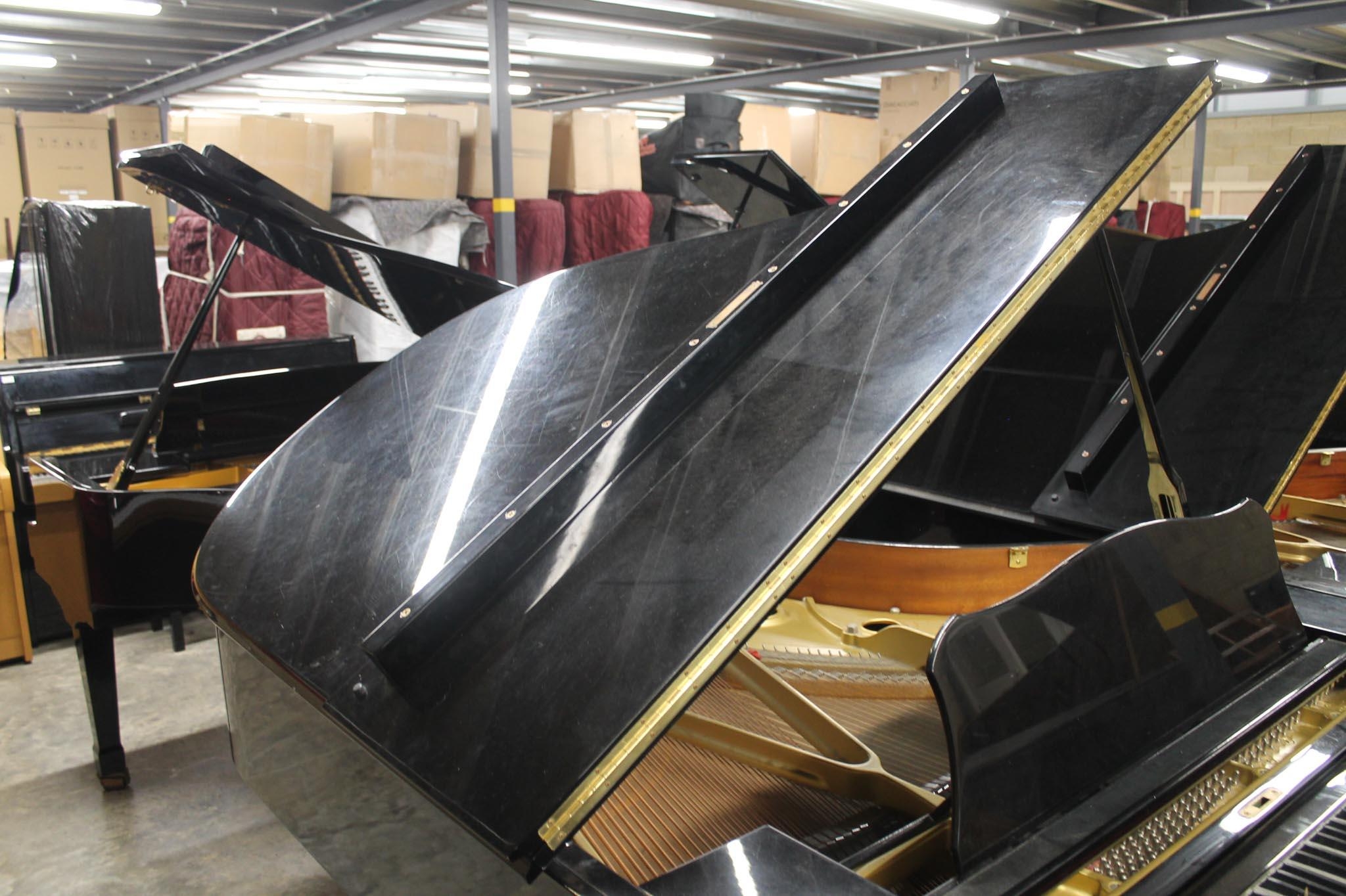 A 6ft 1in Model C3 grand piano in a bright ebonised case on square tapered legs, on an 'A' frame.