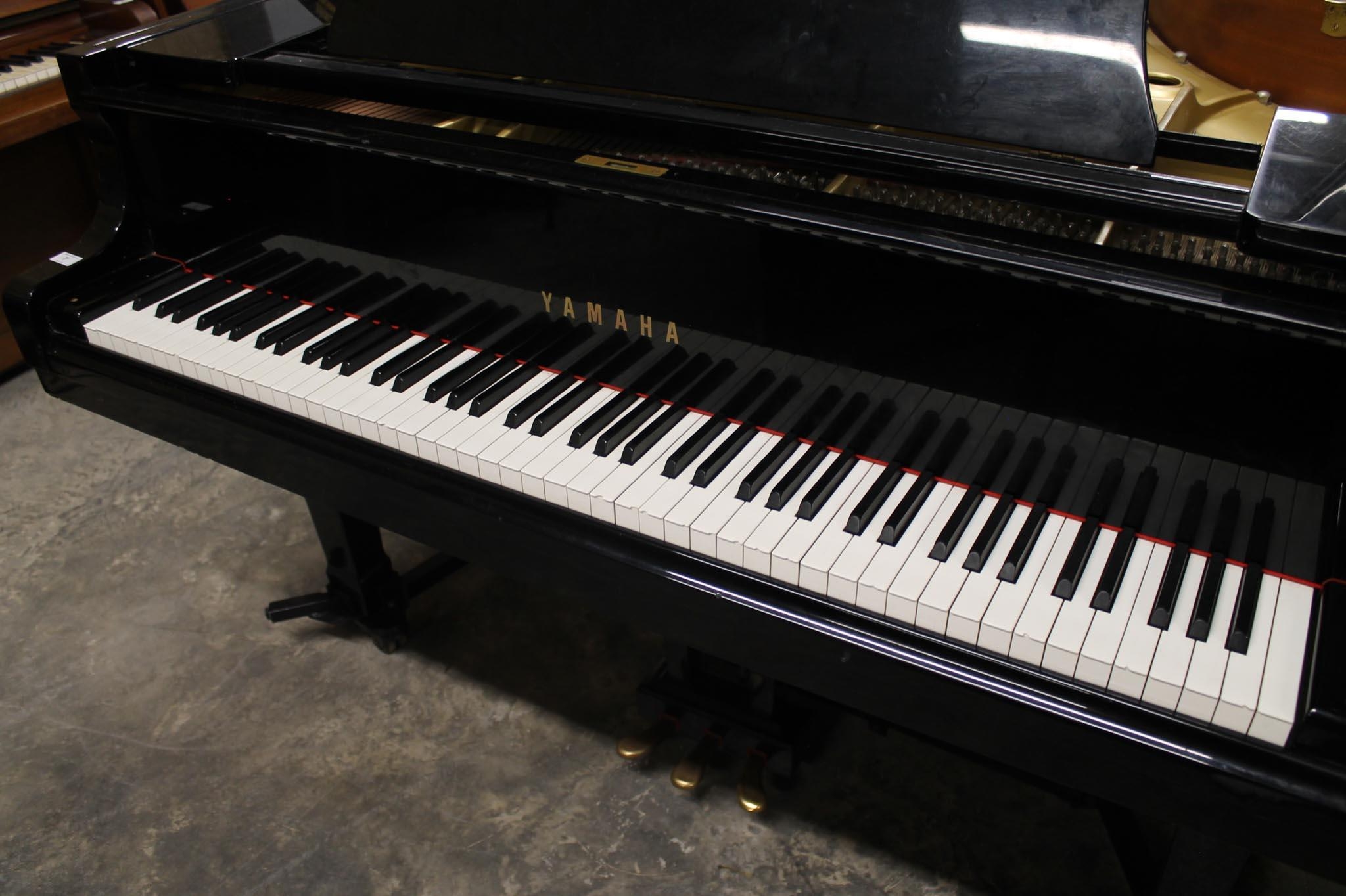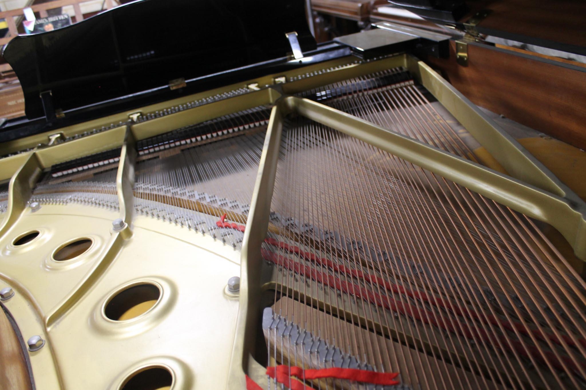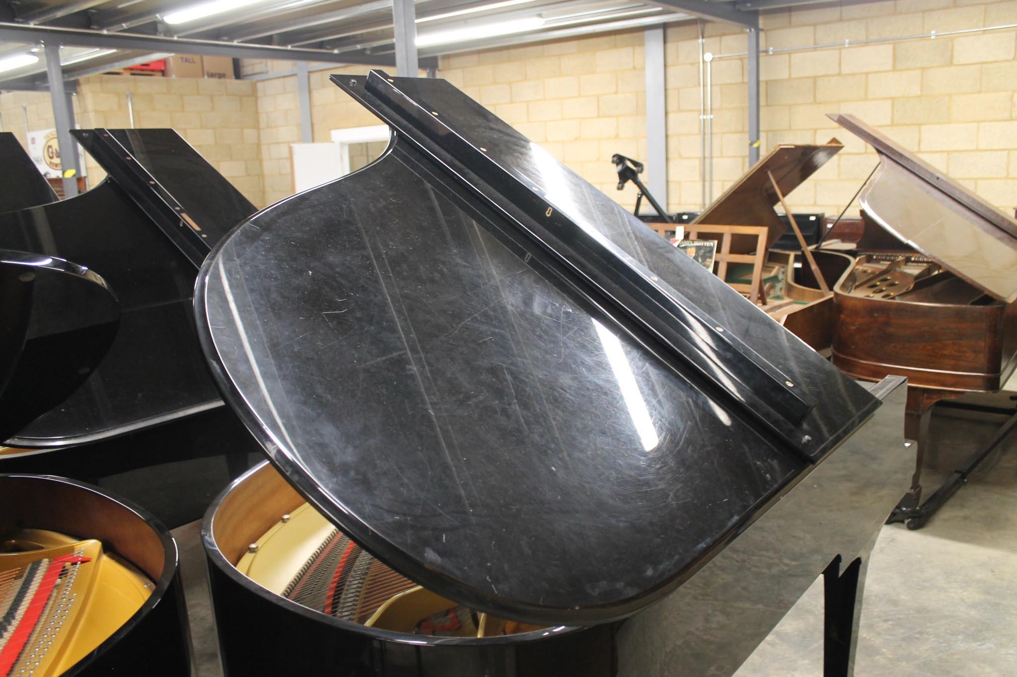 A 6ft 1in Model C3 grand piano in a bright ebonised case on square tapered legs, on an 'A' frame.