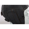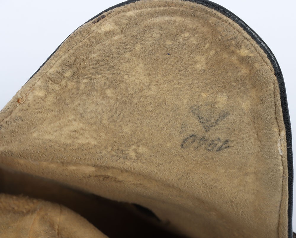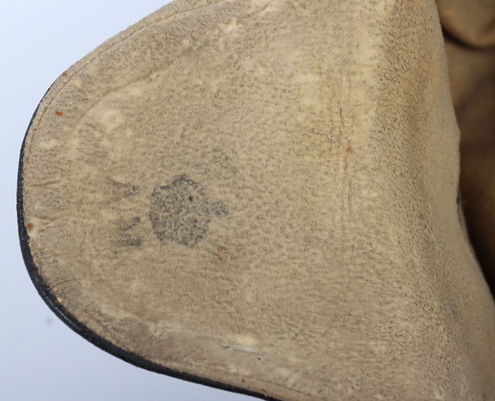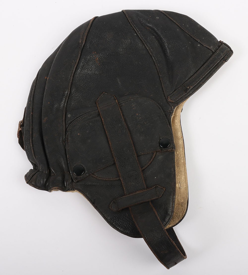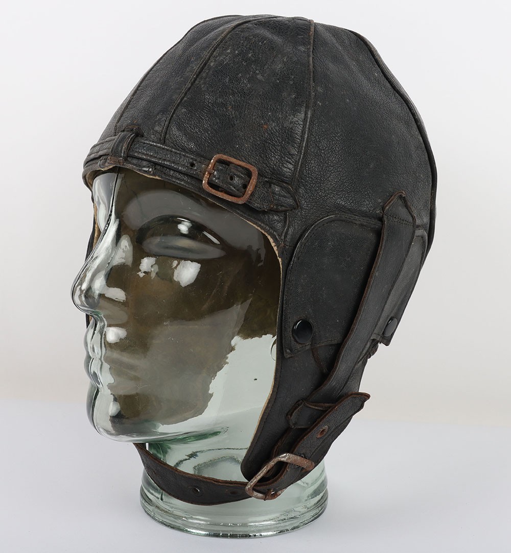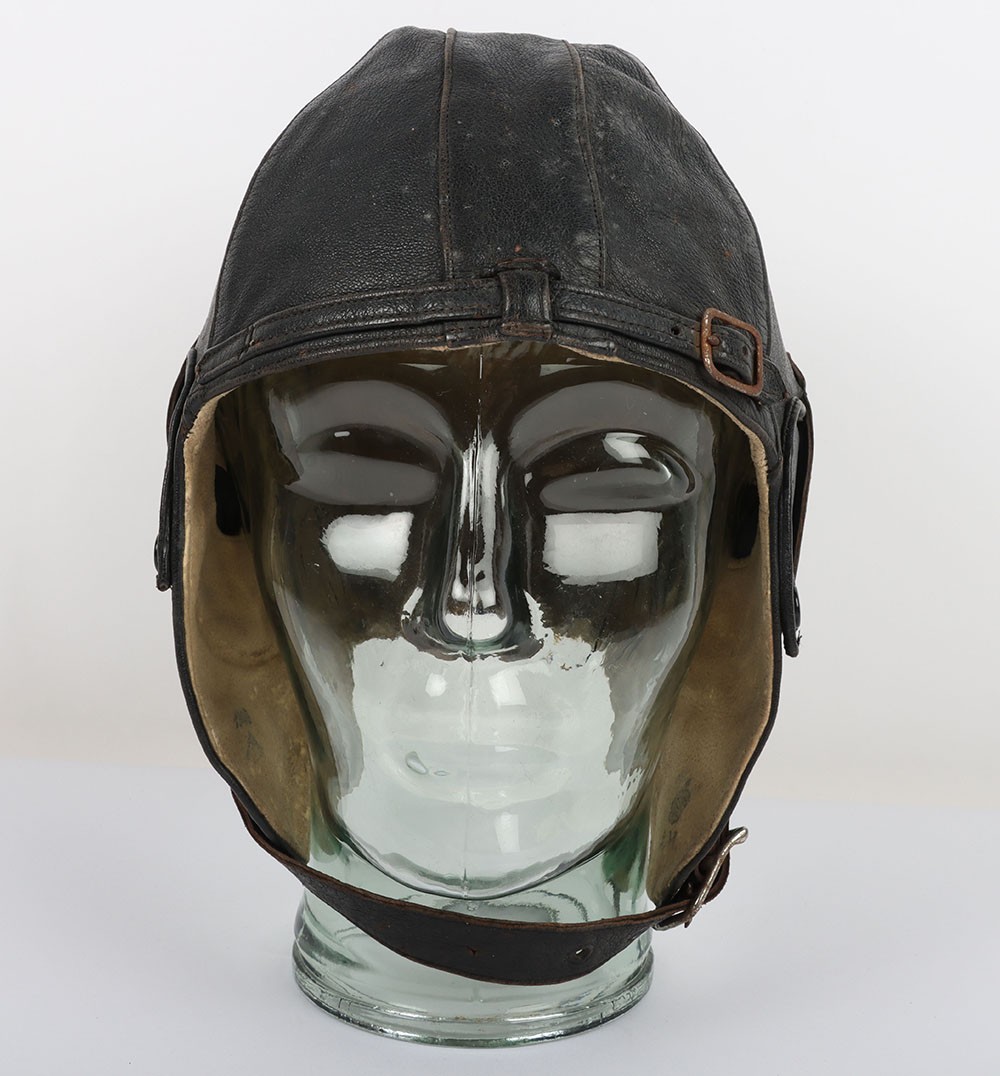 WW2 RAF 'Lewis Leathers' Flying Helmet, 'AM' and 1940 stamped. A good unusual example of a Lewis leathers flying helemt in a dark brown black leather. Featuring frontal adjustment strap and chin strap. These example though features a nice 'AM' and crown and a 1940 date to th chamois leather lining. The large original lewis Leathers' branded tailors labael sits inside the upper crown. Good condition with age related wear.