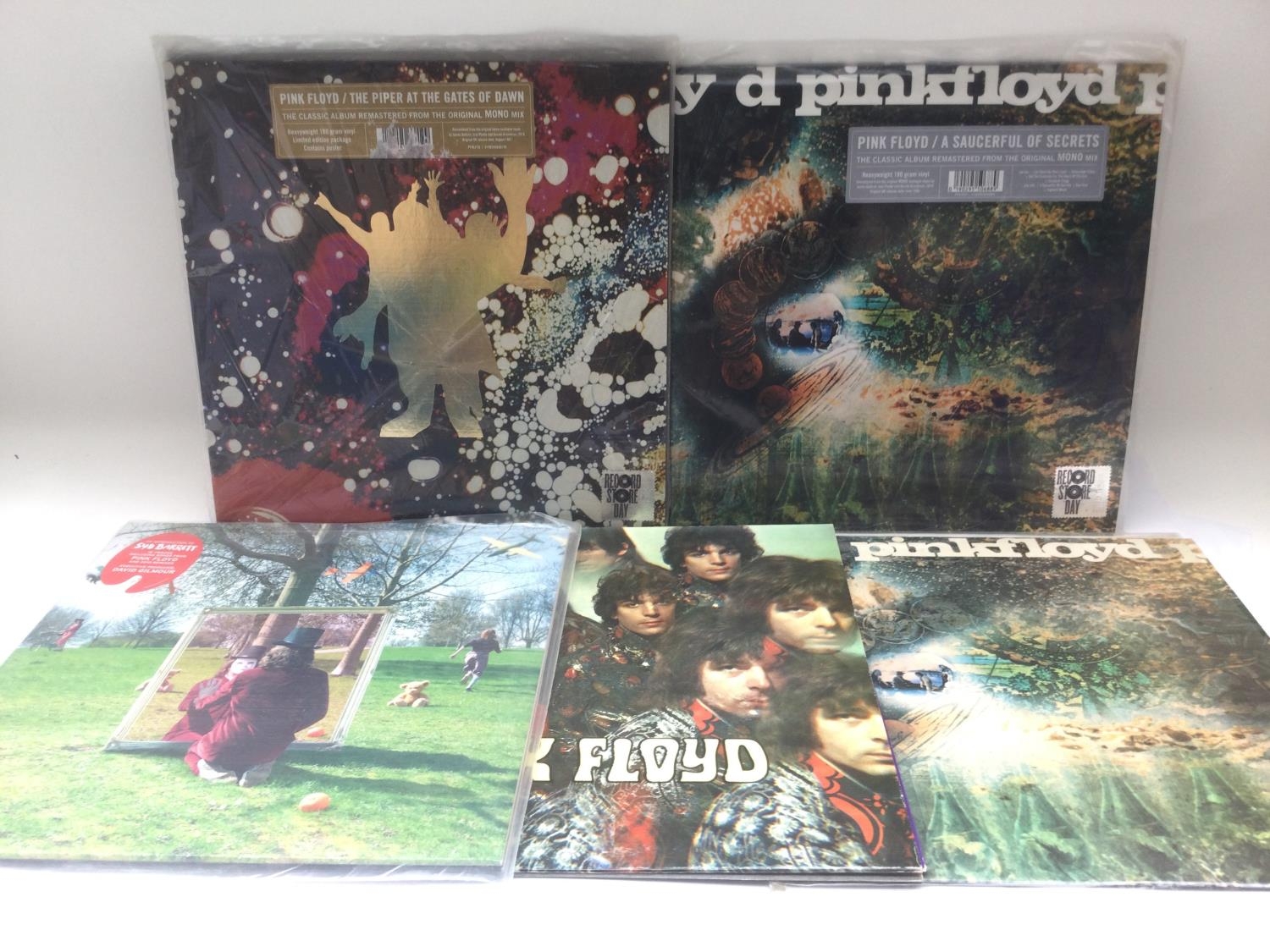 Five Pink Floyd LPs comprising two record store day exclusive pressings of Piper At The Gates Of Dawn' and 'A Saucerful Of Secrets' plus 'An Introduction To Syd Barrett' and others. No first UK pressings in this lot.