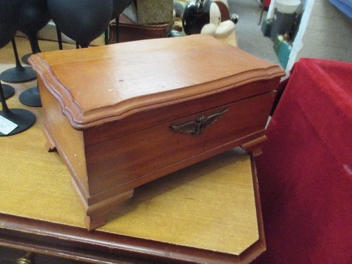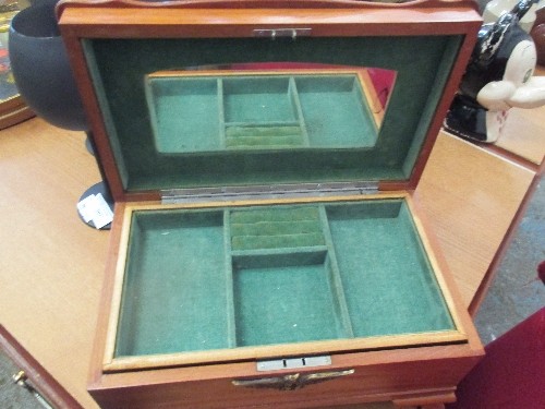 A STYLISH LINED WOODEN JEWELLERY BOX