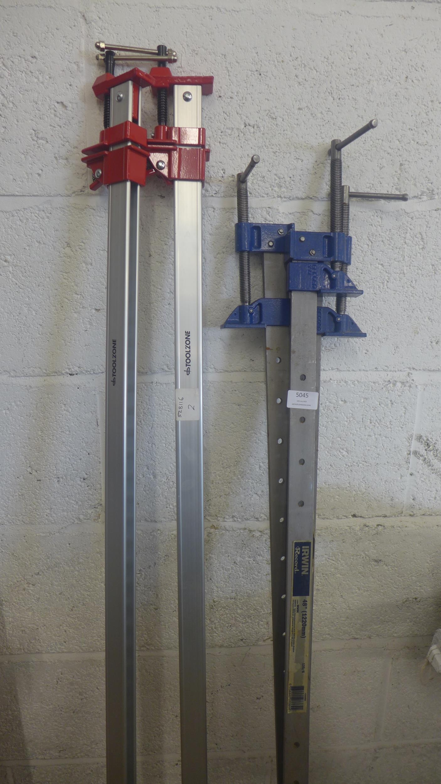 3 x Irwin record sash clamps and 2 x Toolzone aluminium sash clamps
