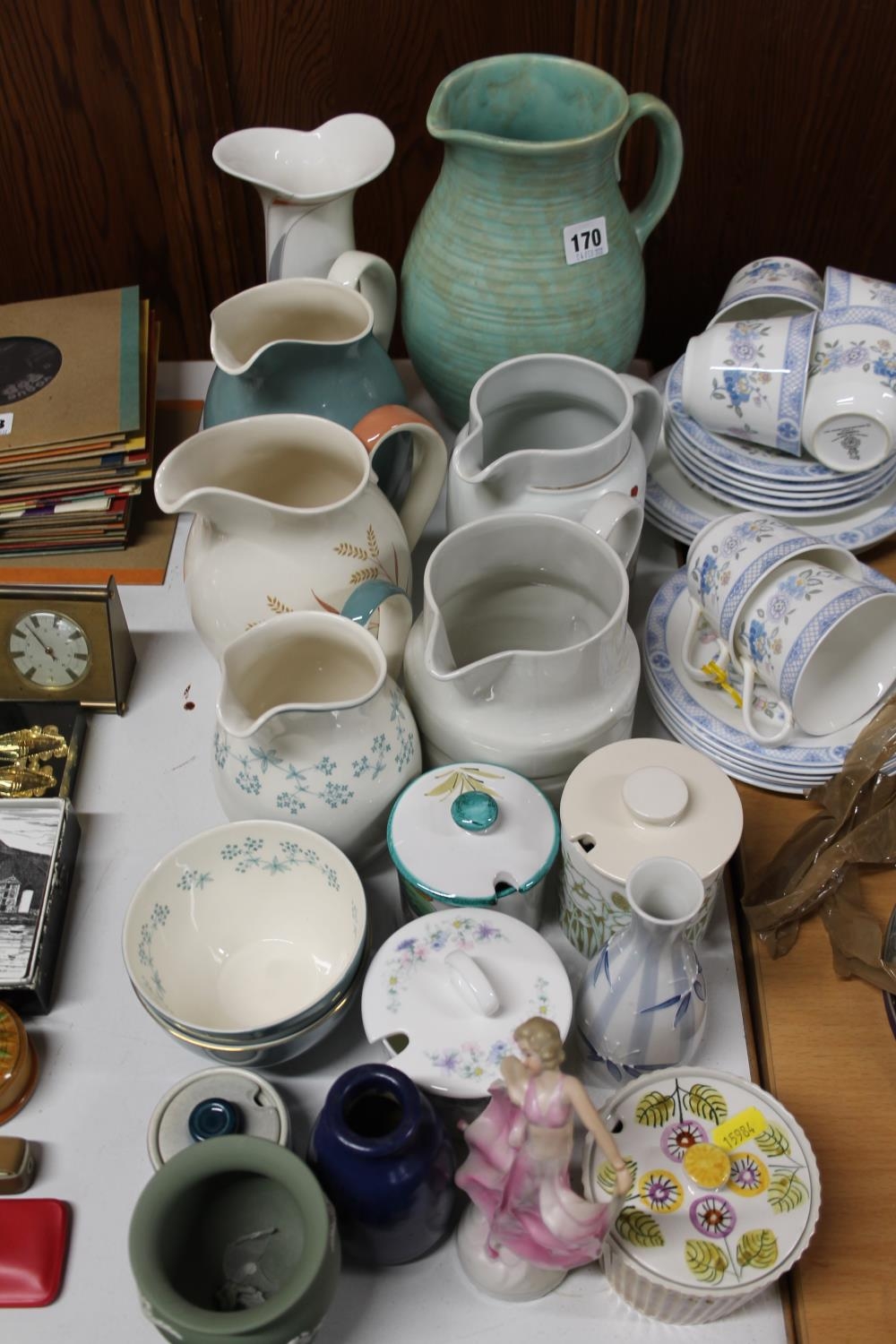 1950's ribbed jug, other ceramics, Wedgwood vase, etc.