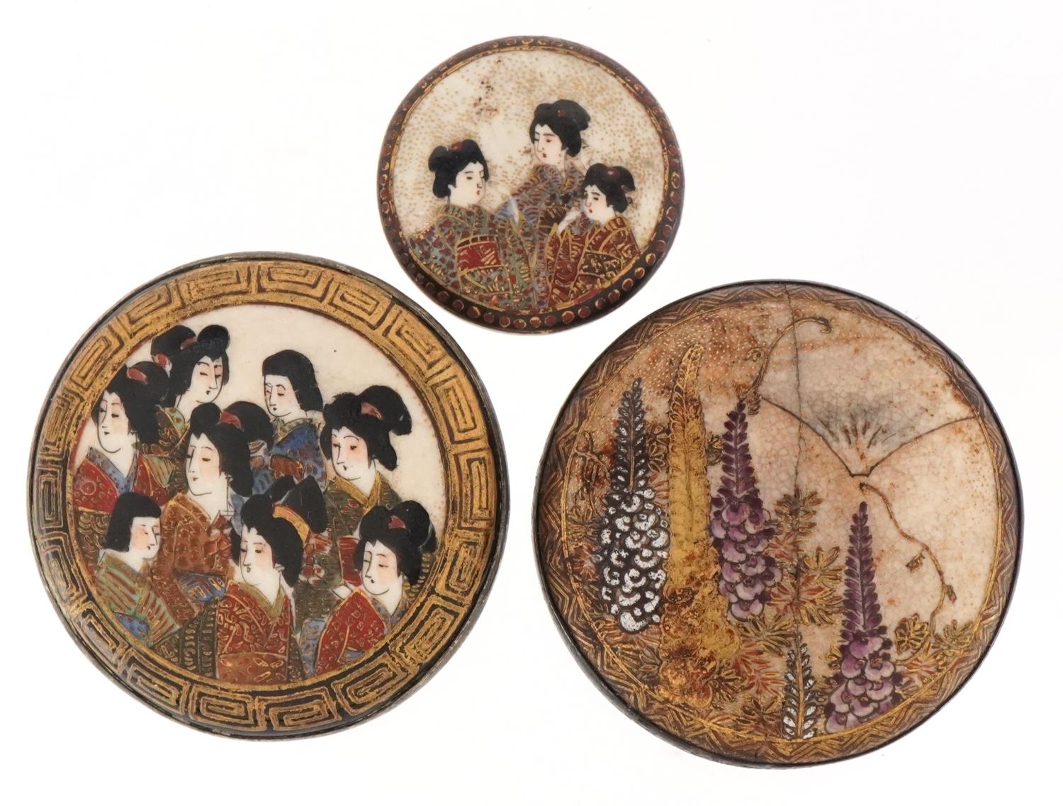 Three Japanese Satsuma pottery buttons, the largest 5cm in diameter.