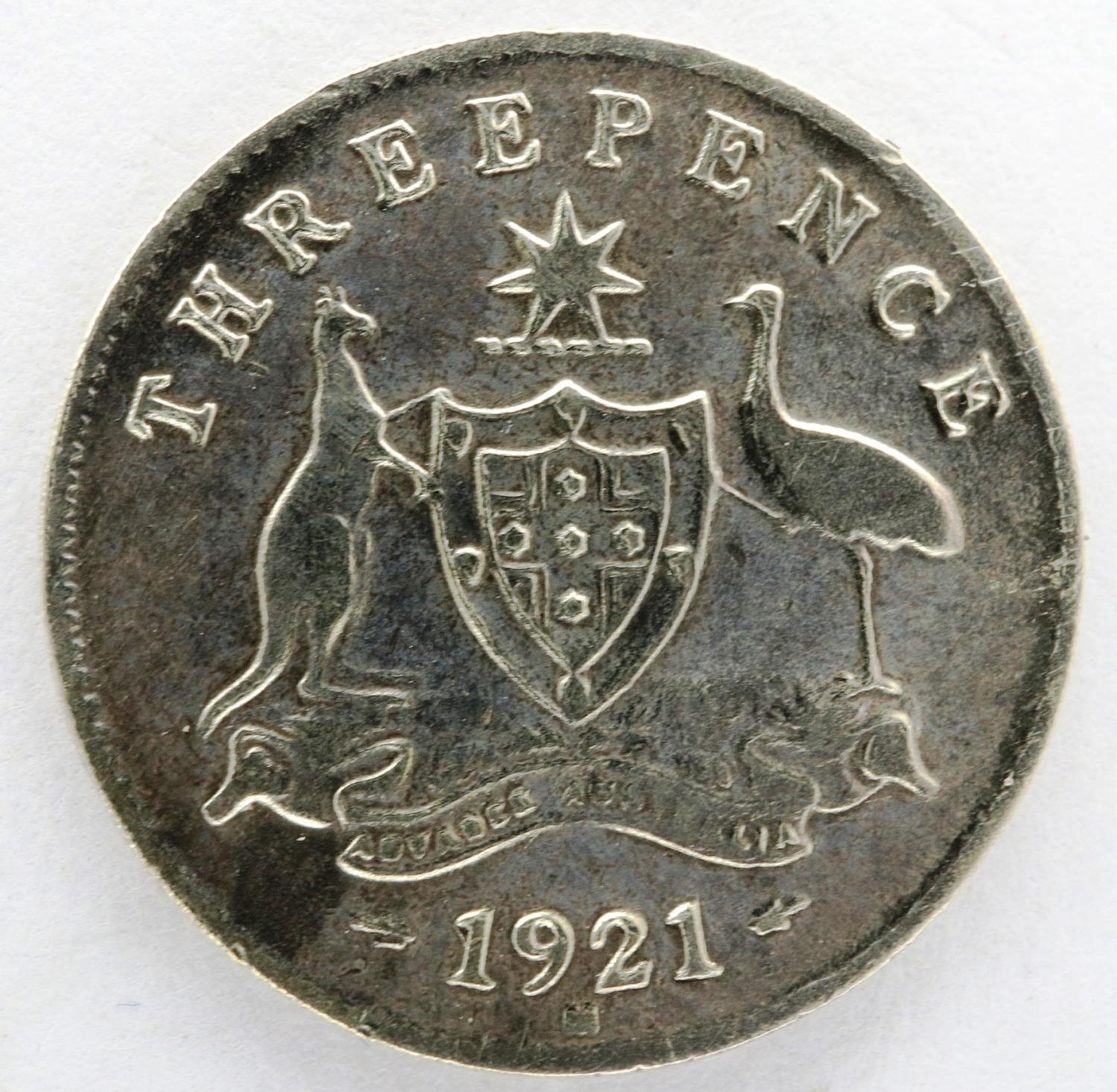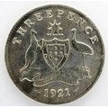 1921 M silver threepence of George V, Australia. P&P Group 0 (£5+VAT for the first lot and £1+VAT for subsequent lots)