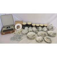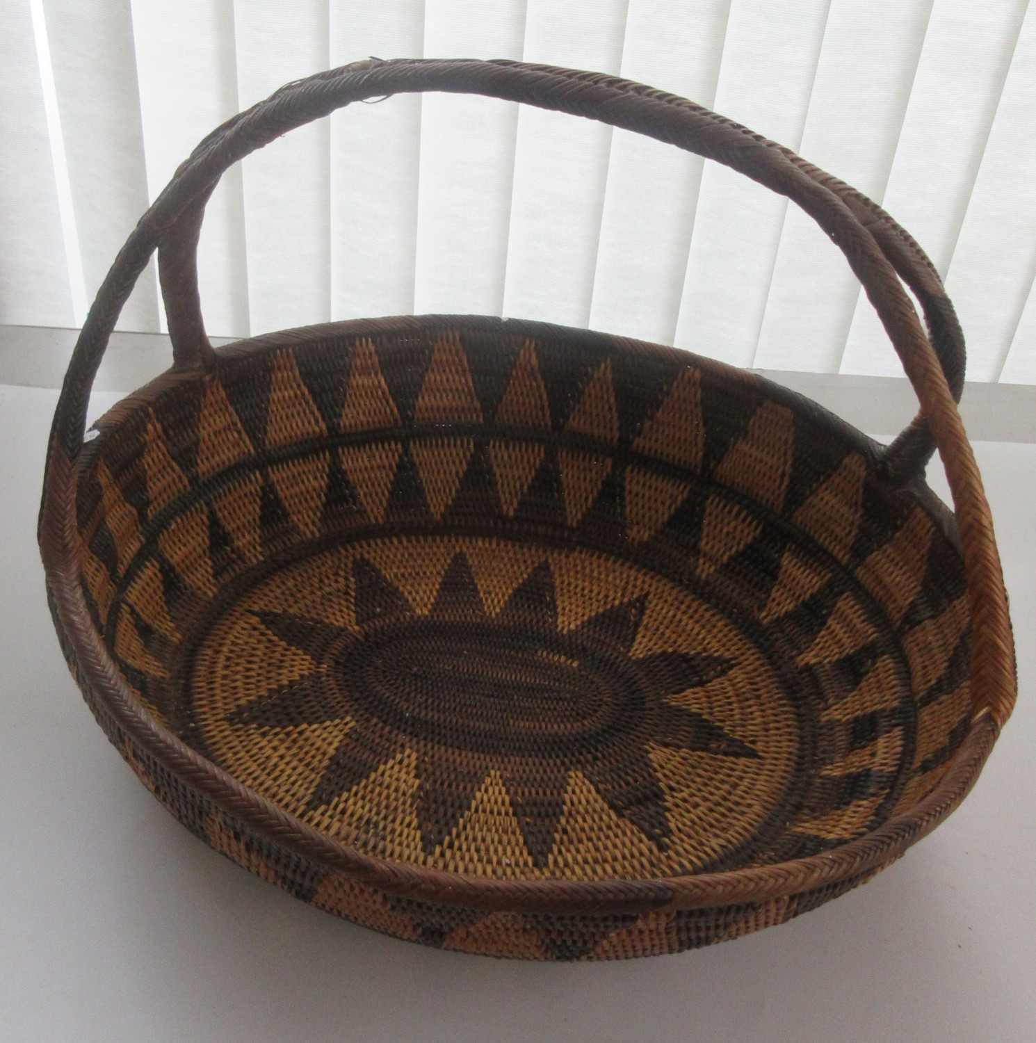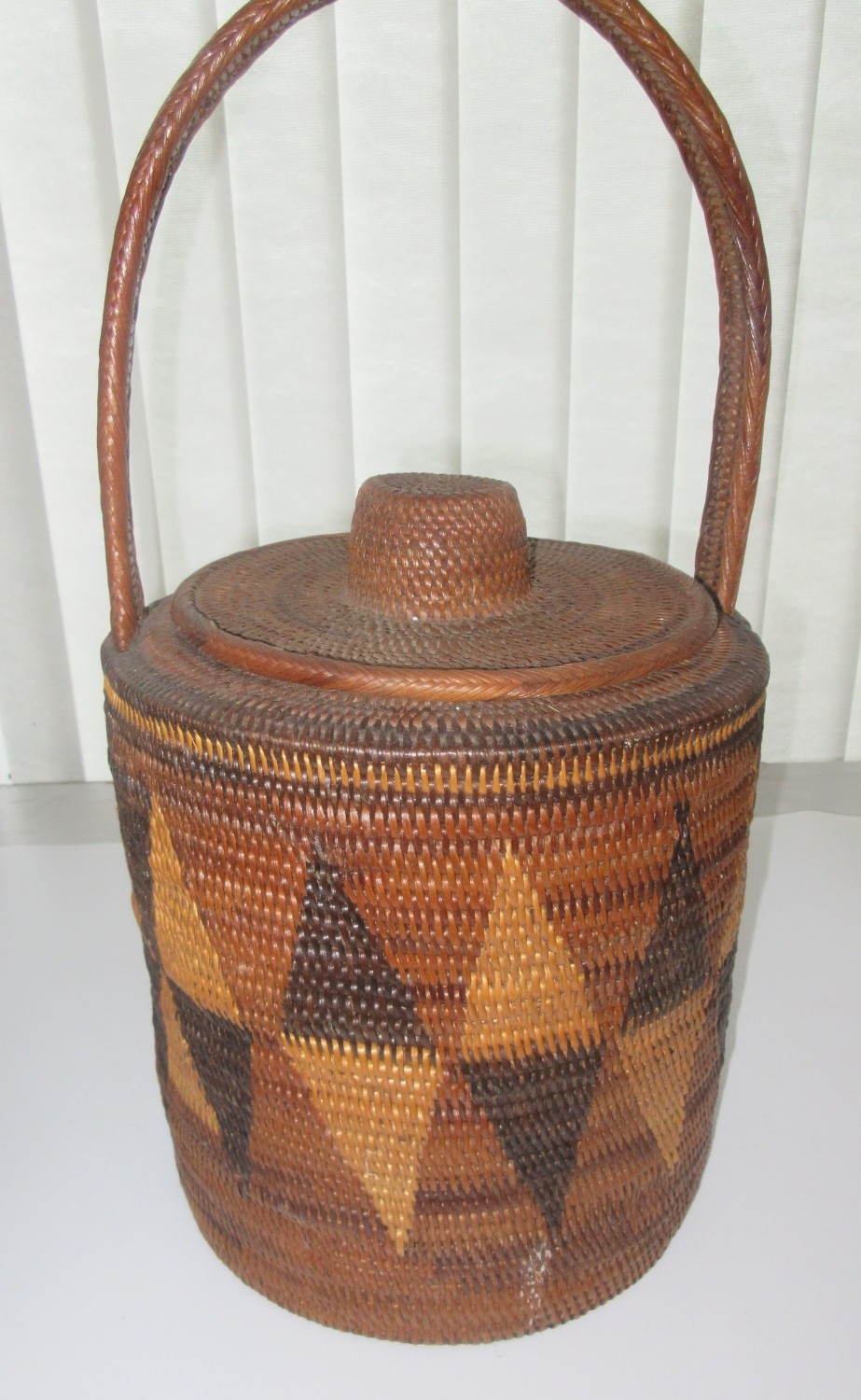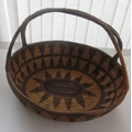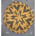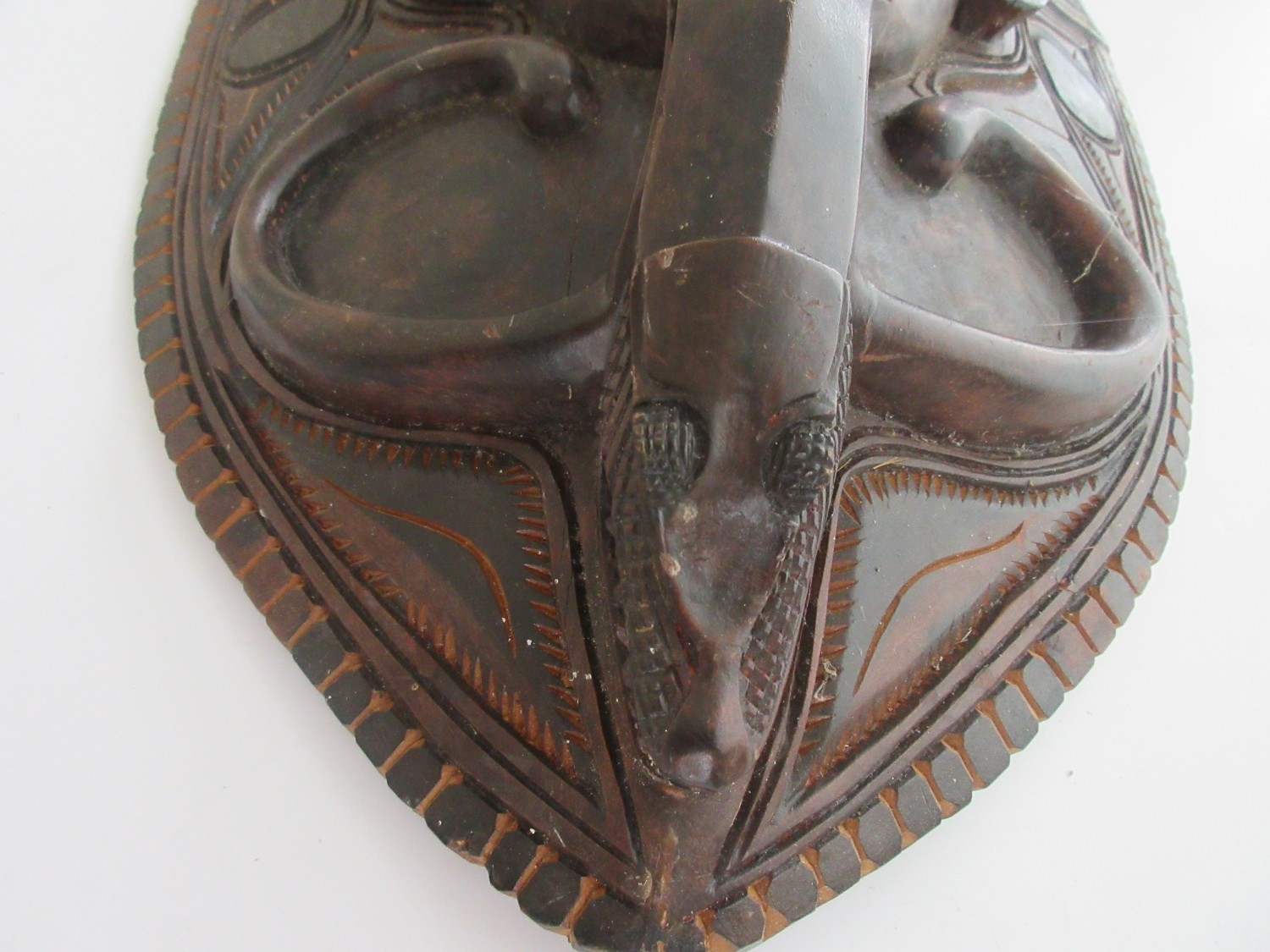Collection of tribal art. Papa New Guinea flat woven grain basket, carrying basket, lidded basket, wooden carved national crest bird of Paradise, well carved ornate ceremonial mask. African wood carved elephants, small tribal masks
