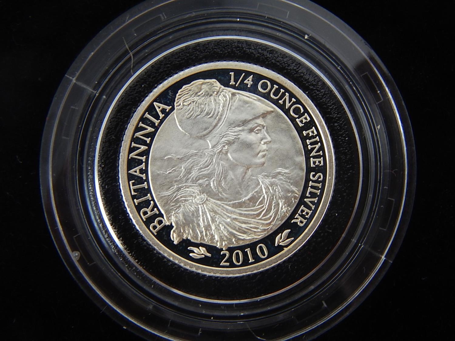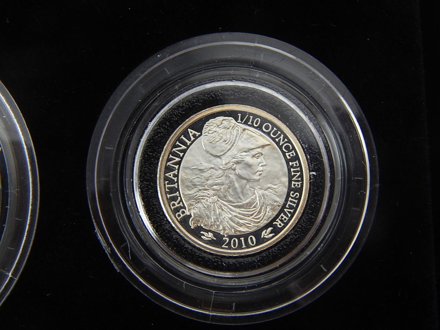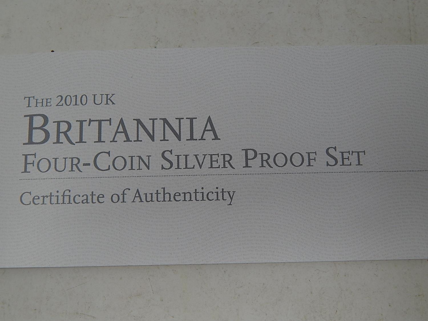 Britannia four coin Silver Proof Set 2010 in case of issue about as struck
