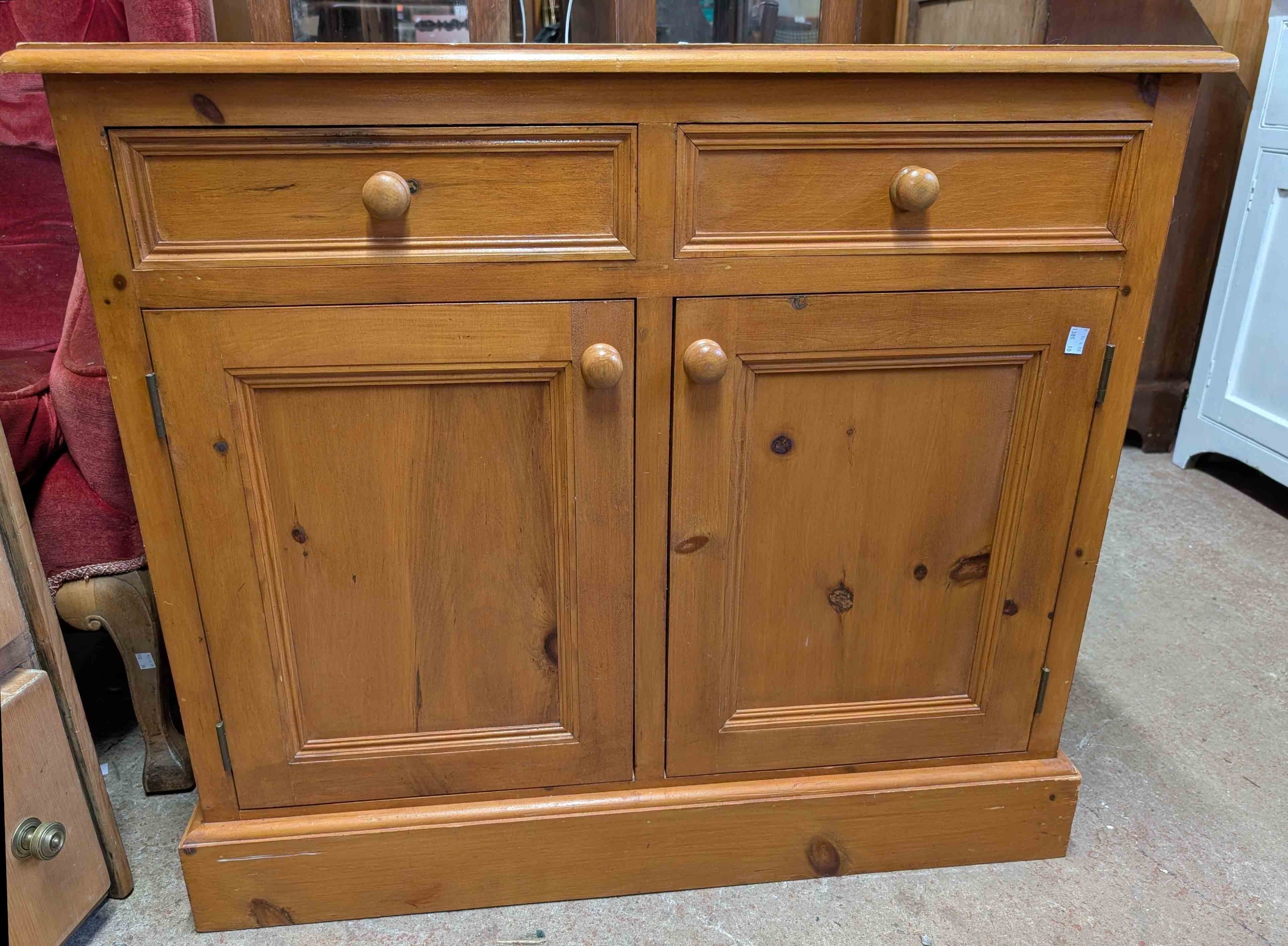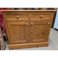 A 90cm modern pine cabinet with two frieze drawers and double cupboard under, set on plinth base