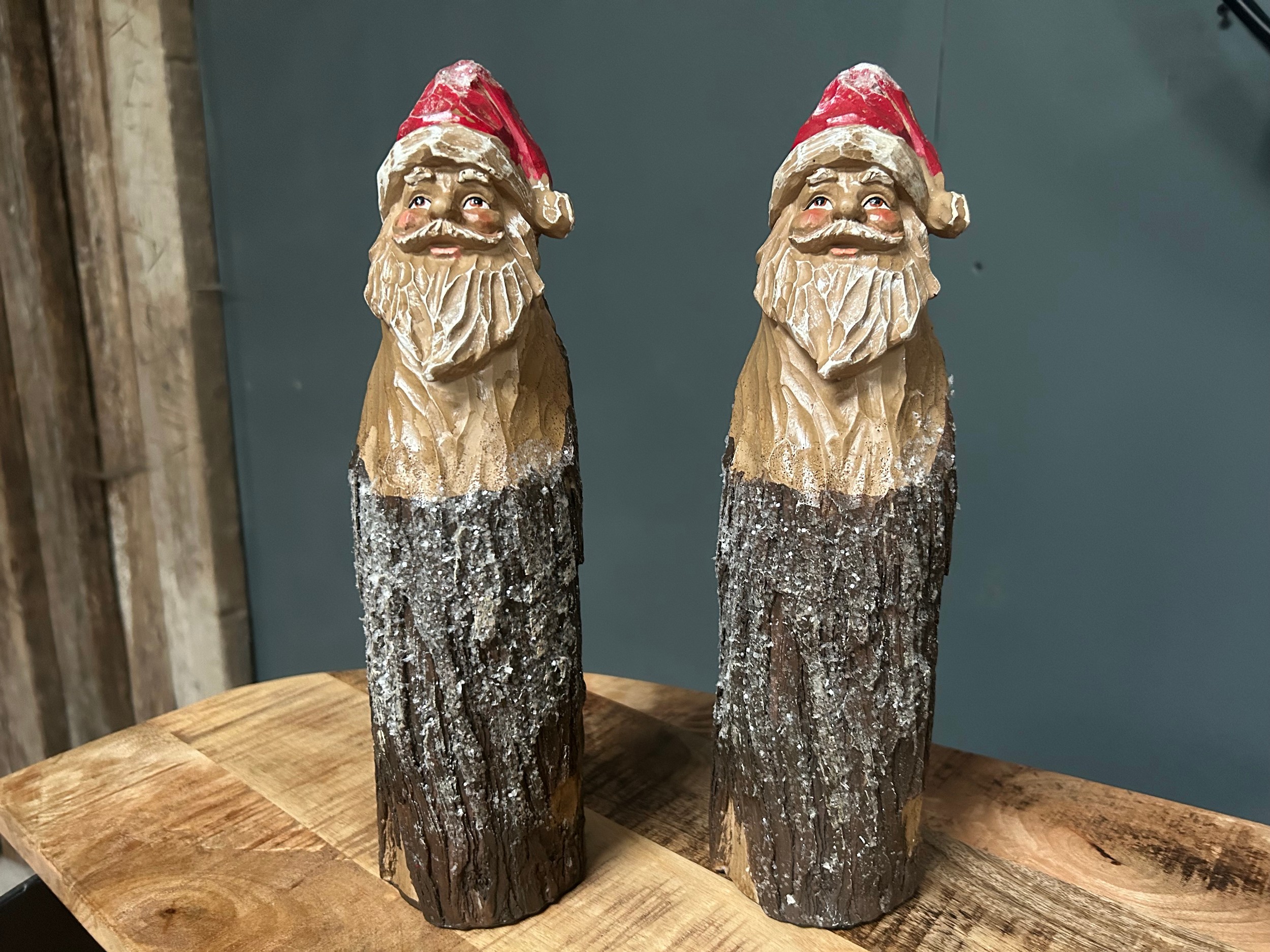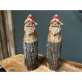 PAIR HAND-CARVED WOODEN CHRISTMAS SANTA FIGURES