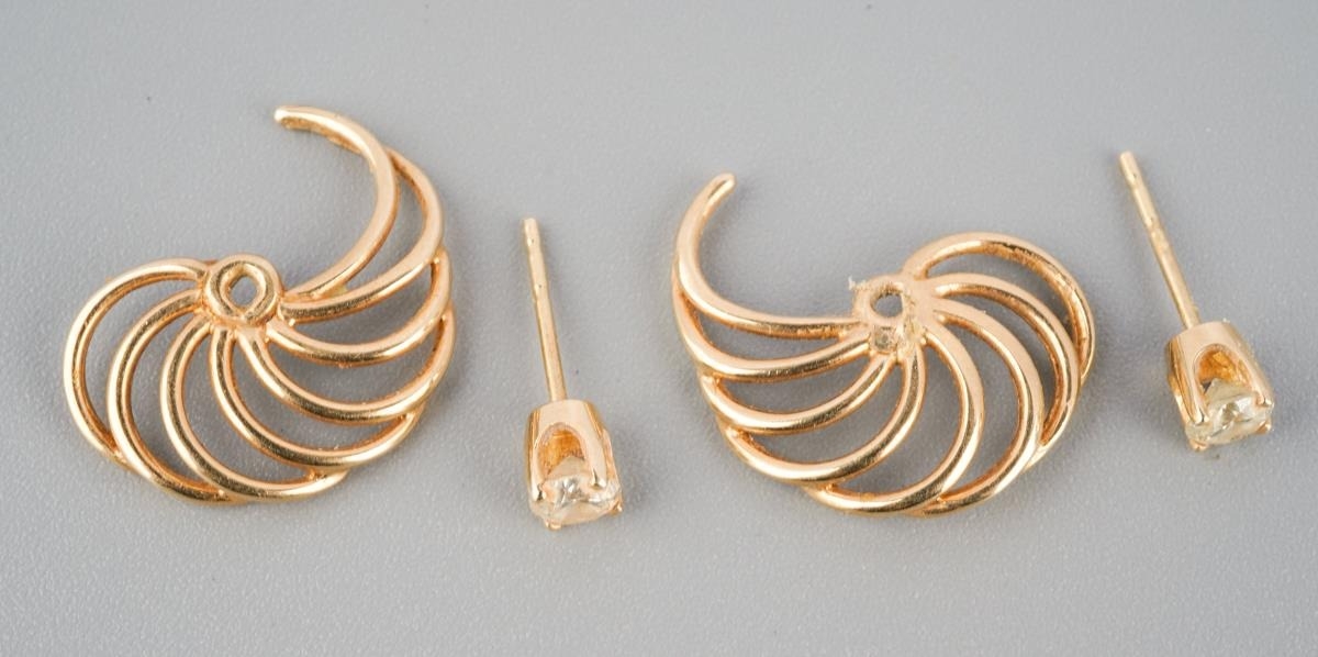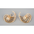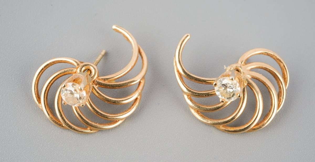 A pair of diamond set ear studs, with accent detail. Unmarked, assessed as 9ct gold. approx gross weight 2.9 grams.
