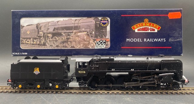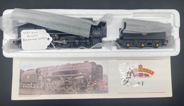 Bachmann Branchline 32-852 Class 9F standard 2-10-0 92116 with single chimney and BR1C tender in BR black with early emblem (Good)