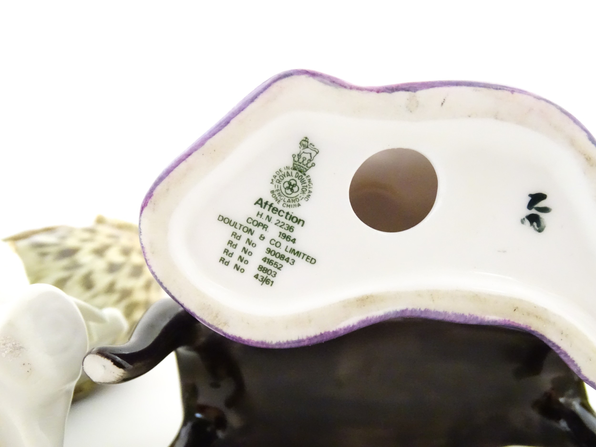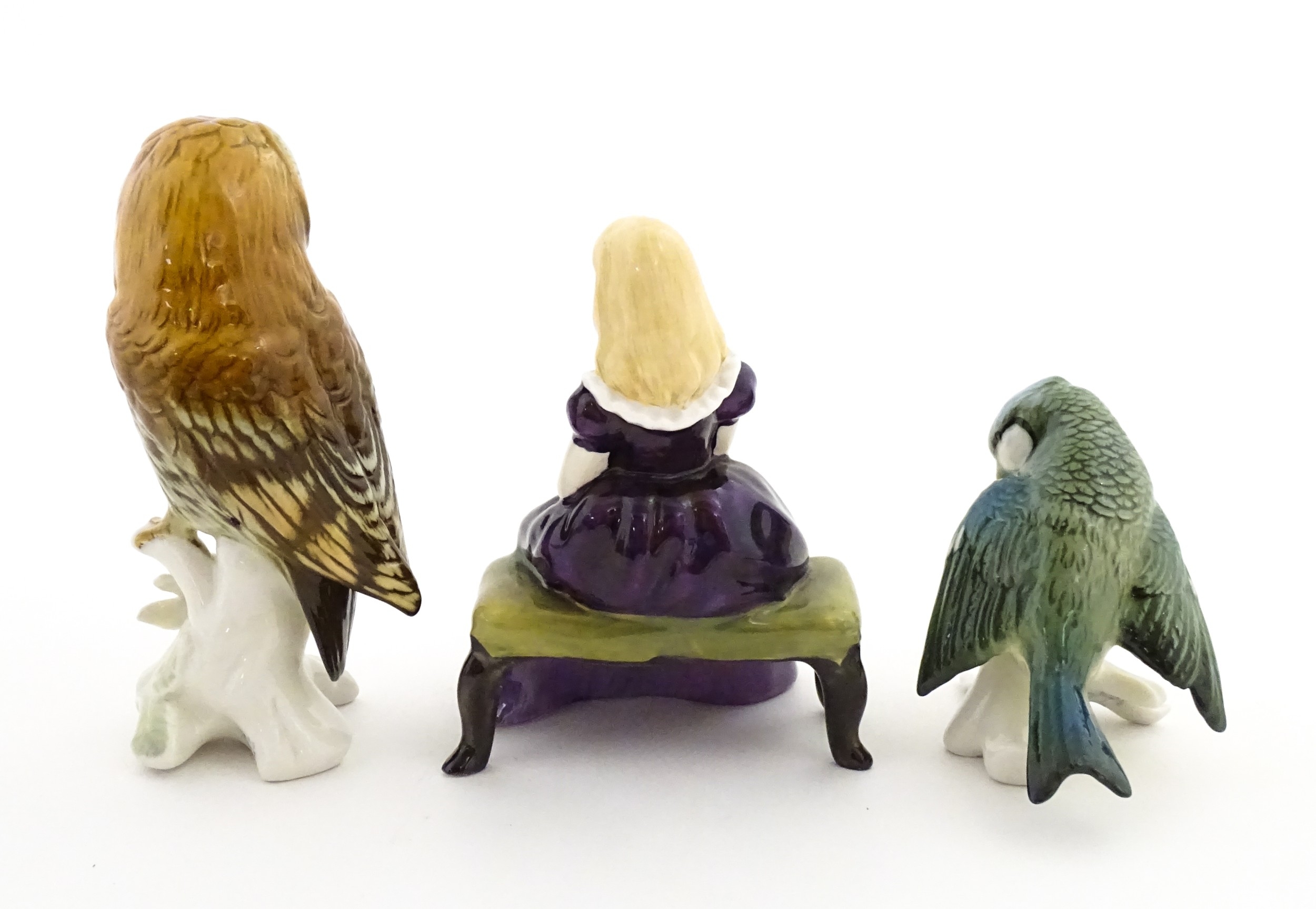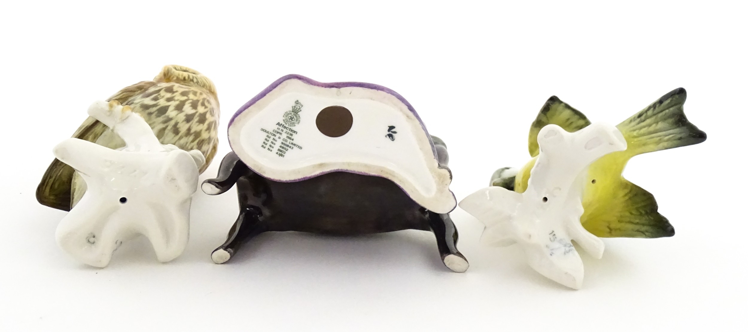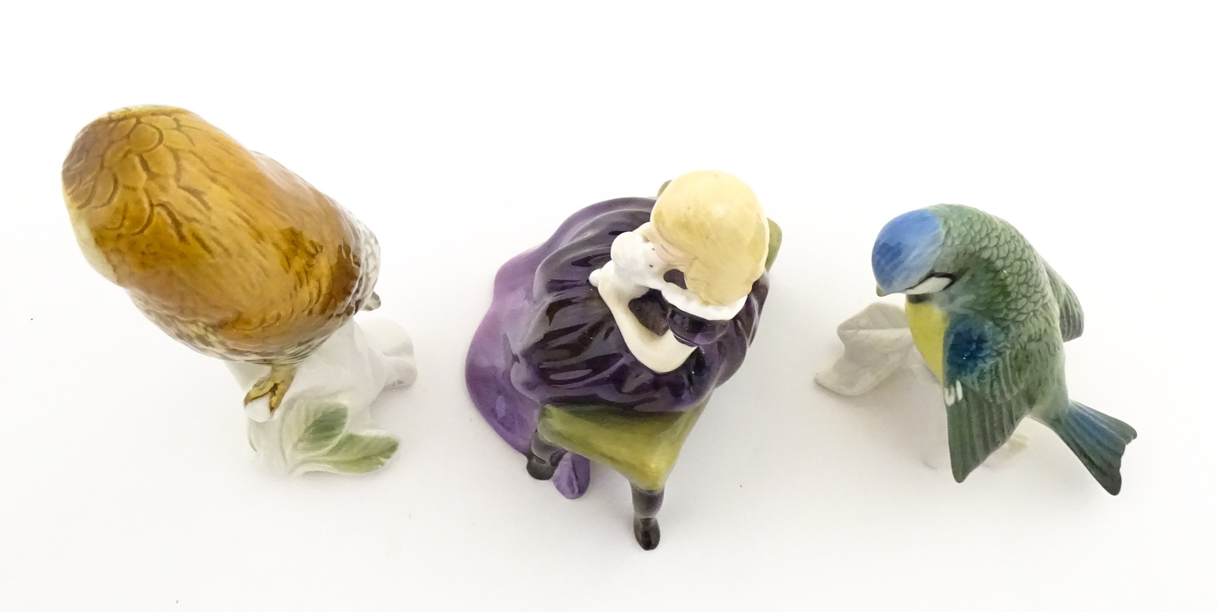 Two Karl Ens models of birds comprising an owl and a blue tit. Together with a Royal Doulton model Affection HN2236. Largest approx. 5 1/4" high (3)