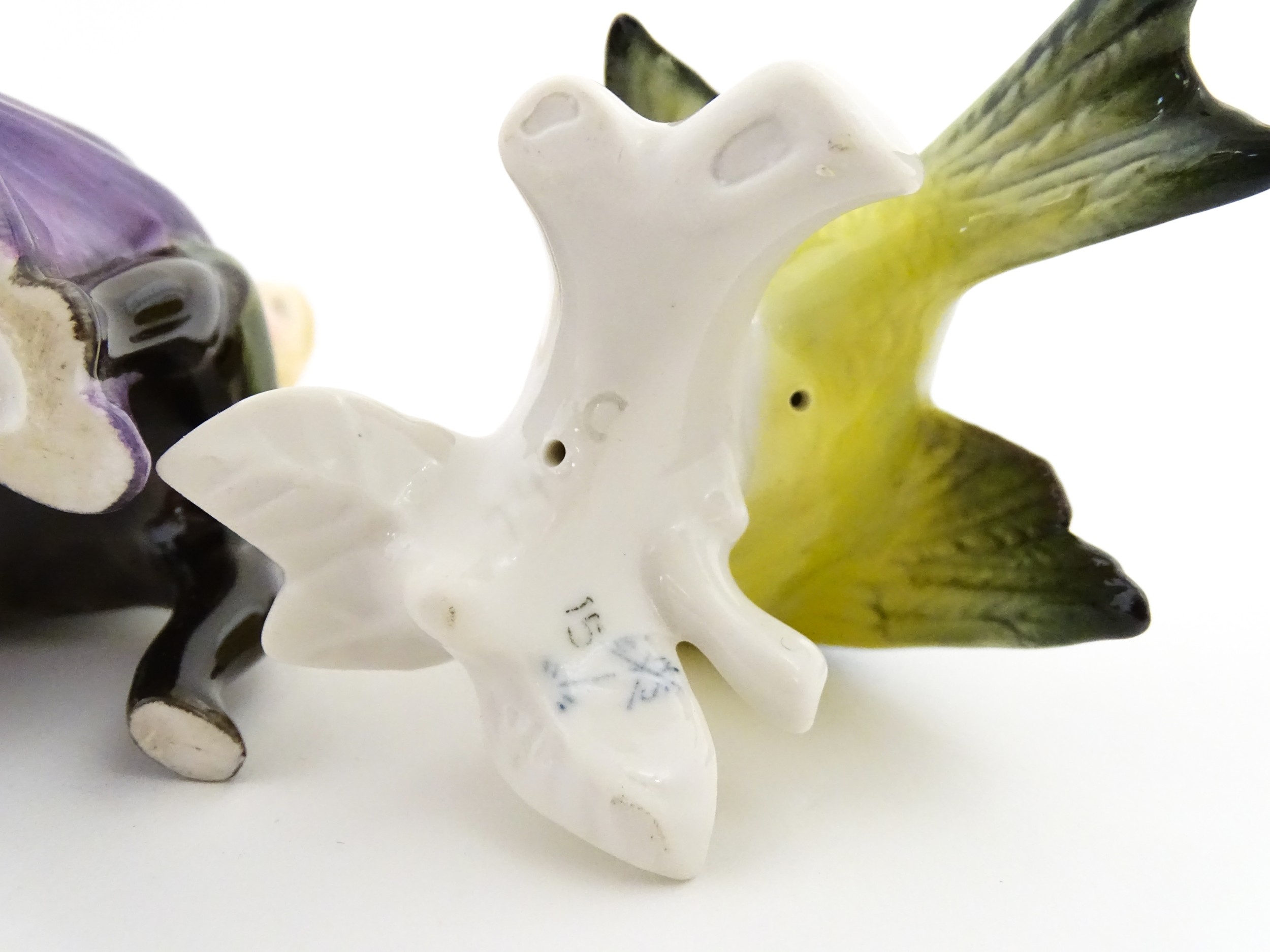 Two Karl Ens models of birds comprising an owl and a blue ti...