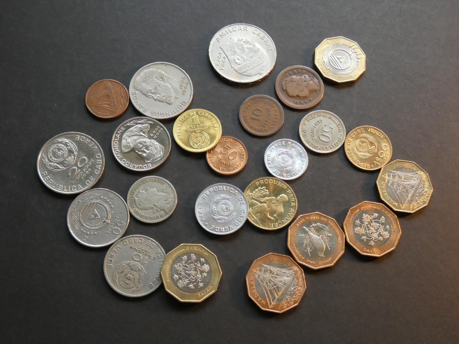 CAPE VERDE ISLANDS. 10 Centavos (1930), 20c (1930, 1977), 50c (1930, 1949, 1968, 1977), 1 Escudo (1980, 1985), 2½E (1982), 5E (1994), 10E (1977, 1982), 20E (1977, 1982), 50E (1977, 1994 Macelina flowers), 100E (1994 Saiao flowers, brass outer ring, 1994 Saiao flowers bronze outer ring, 1994 Raso Lark, bronze outer ring, 1994 Raso Lark, brass outer ring, 1994 sailing ship “Madalan”, brass outer ring, 1994 sailing ship “Madalan”, bronze outer ring)