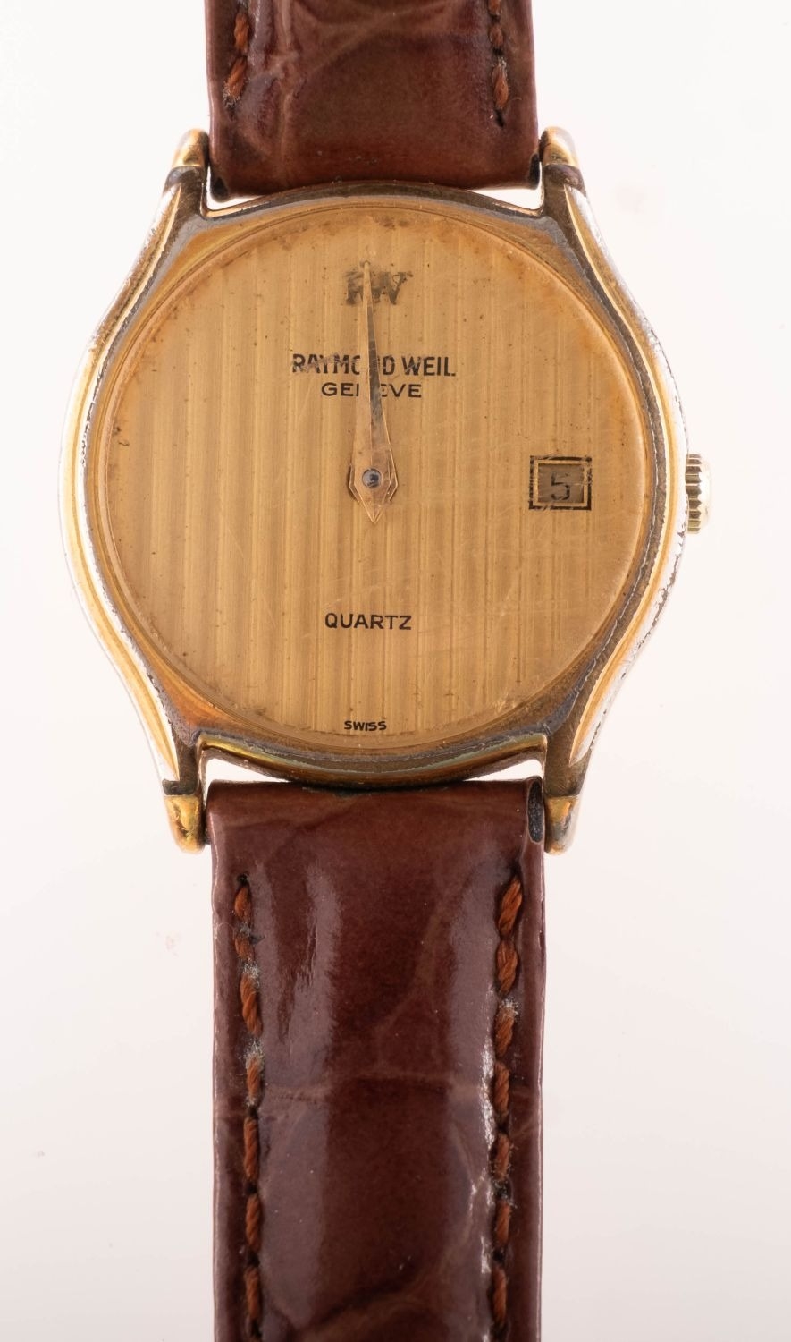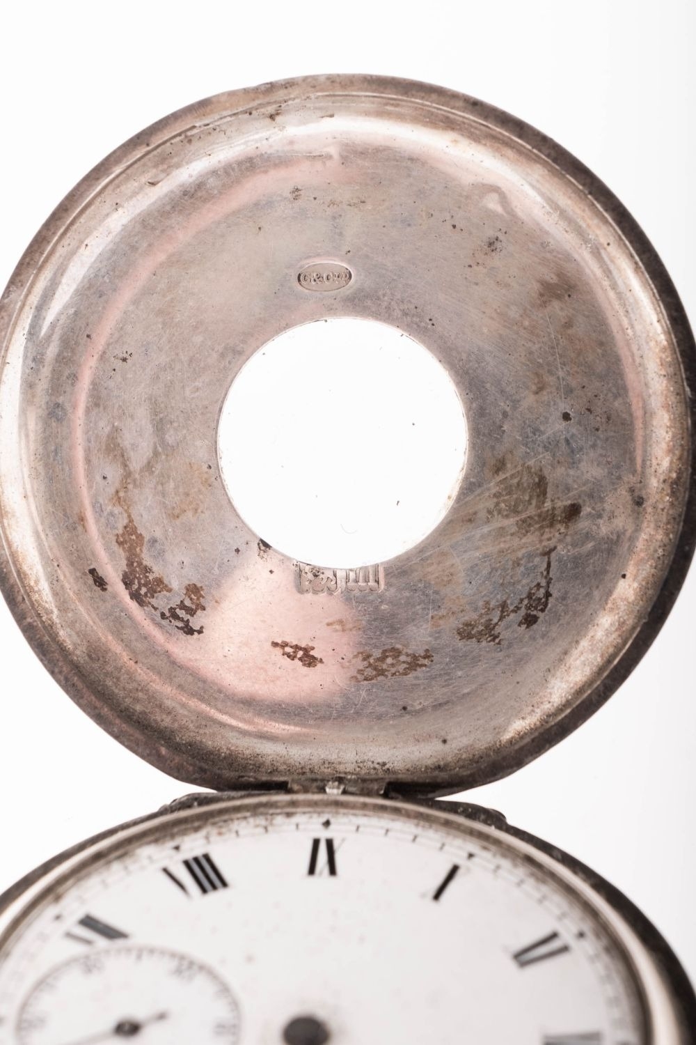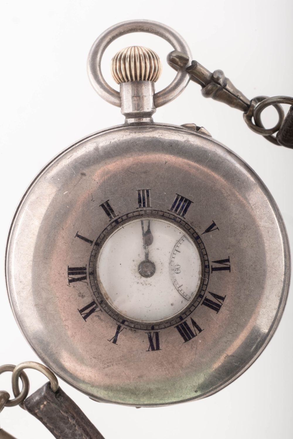 Wright & Craighead, London a silver half-hunter pocket watch the white enamel dial having black Roman numerals, a subsidiary seconds dial and blued-steel spade hands, the three-quarter plate movement having a lever escapement and engraved Wright & Craighead, Clerkenwell, London, No. 8479, the half-hunter case hallmarked for silver, London 1907, with the inner cuvee engraved with a presentation to Revd. R.A. Courthope, M.A., Allhallows, Tottenham, Easter 1913, diameter 50mm, gross weight 112.81gs. Along with a round gold-plated ladies wristwatch signed for Raymond Weil.