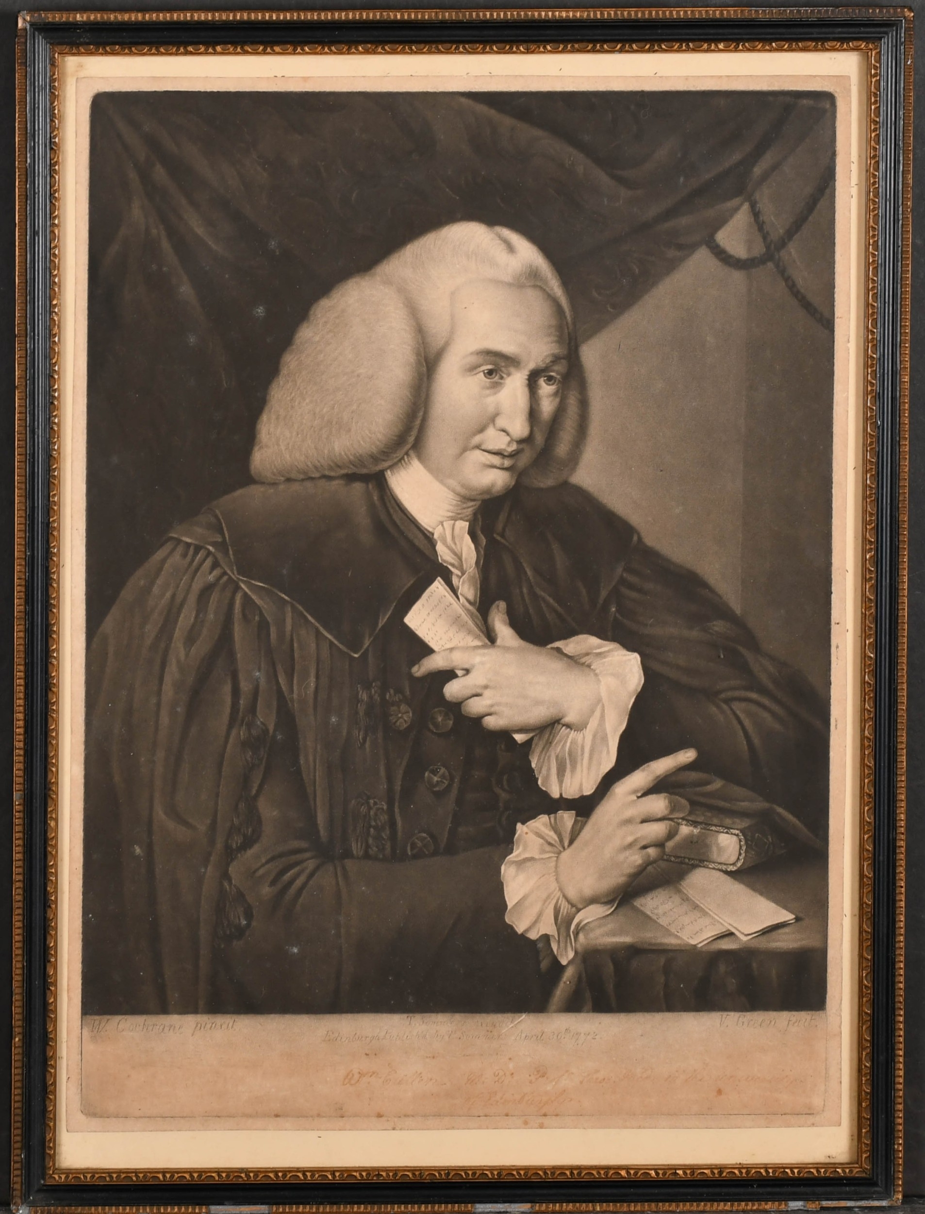 After William Cochran (1738-1785) British. Dr William Cullen (Chemist and Physician 1710-1790), Mezzotint by Valentine Green, Overall 15" x 11" (38.1 x 27.9cm)