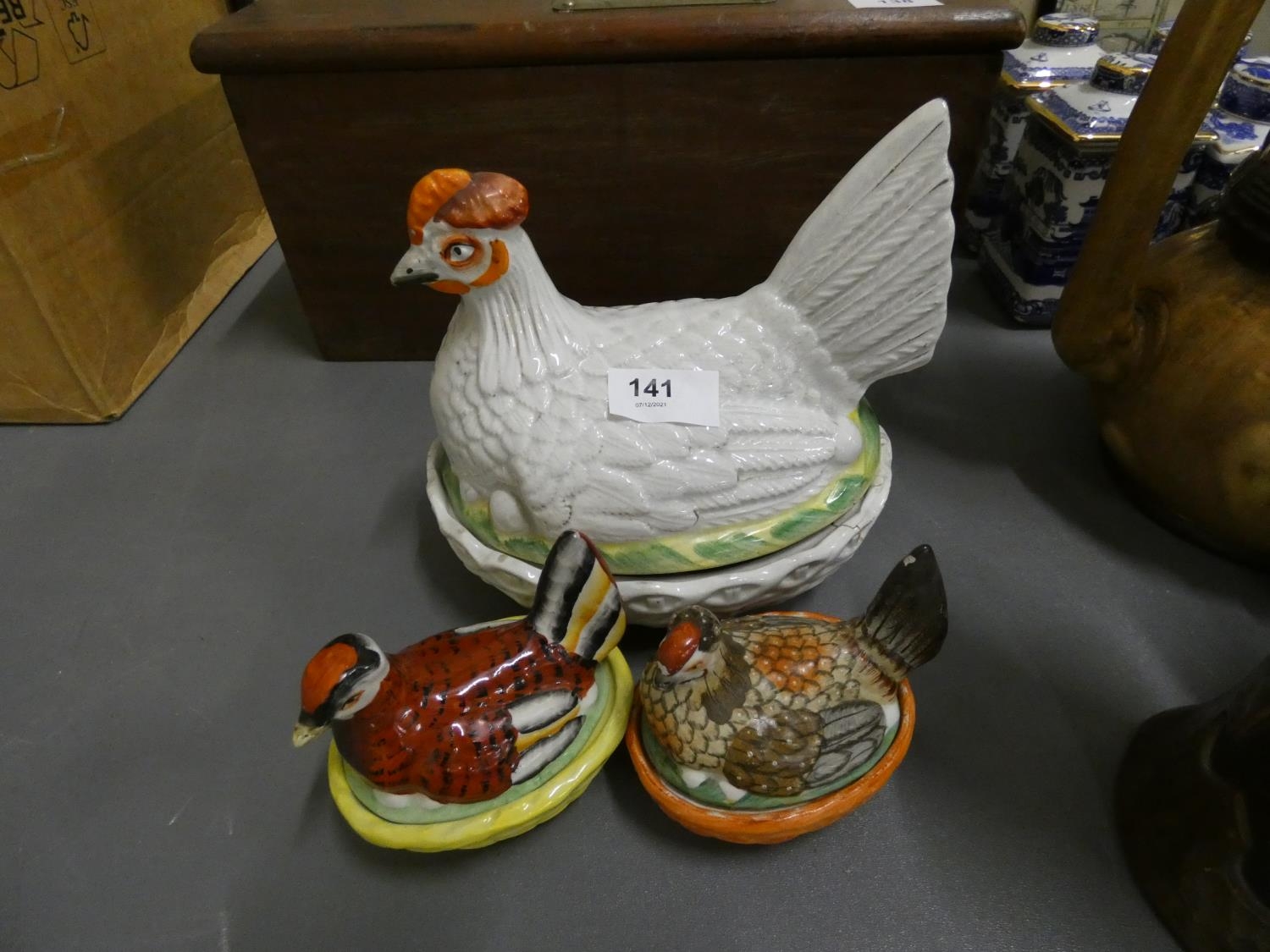 Three vintage hen egg tureens.