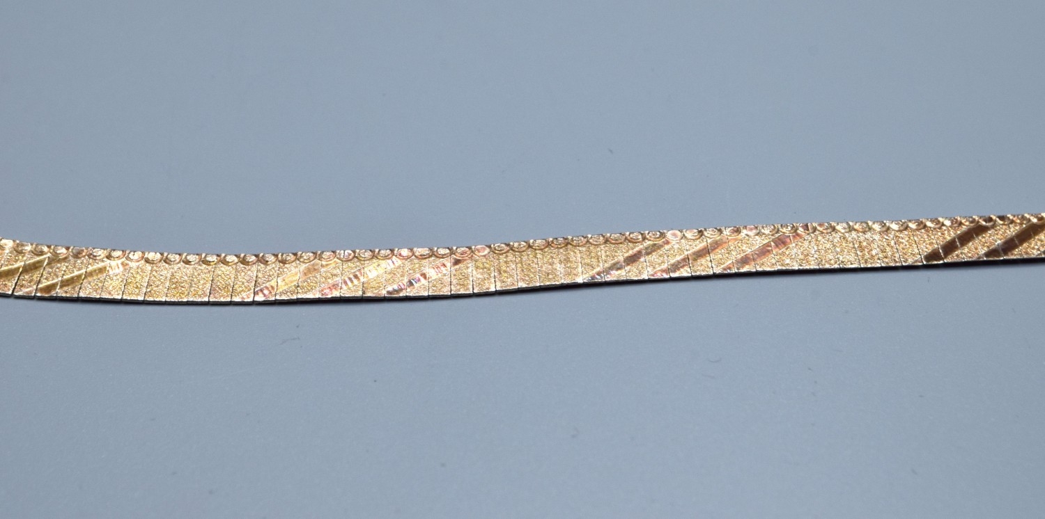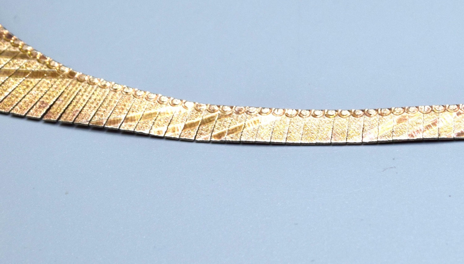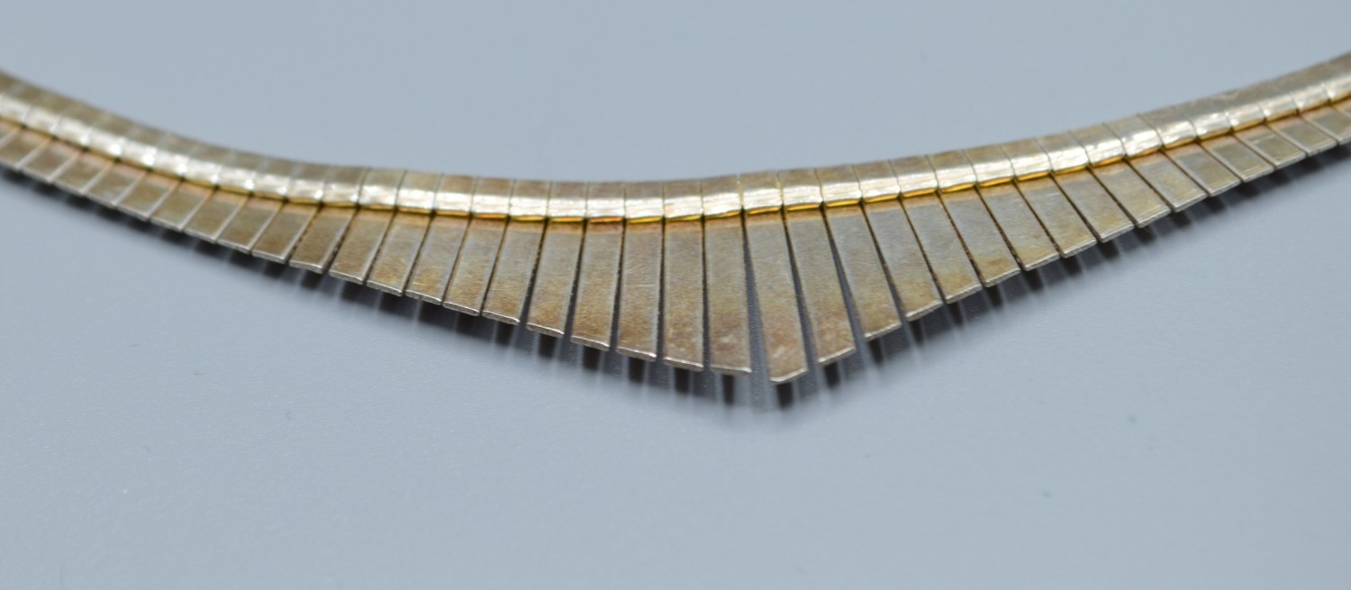 925silver and gold mix Cleopatra style flat link necklace with lobster claw catch 44cm long, 2cm at its widest 26grams