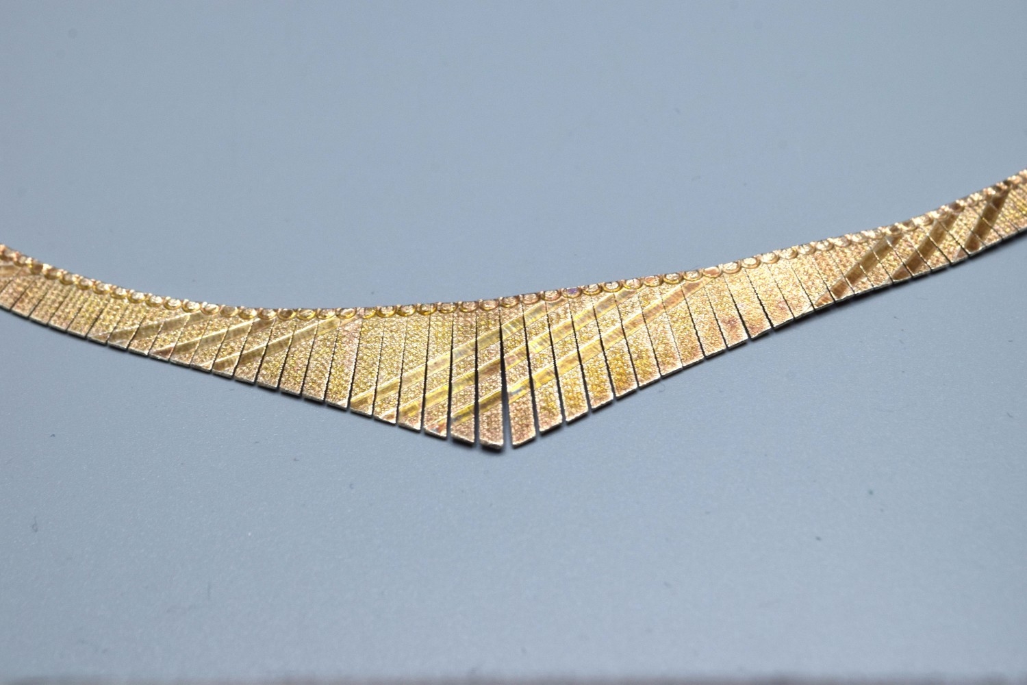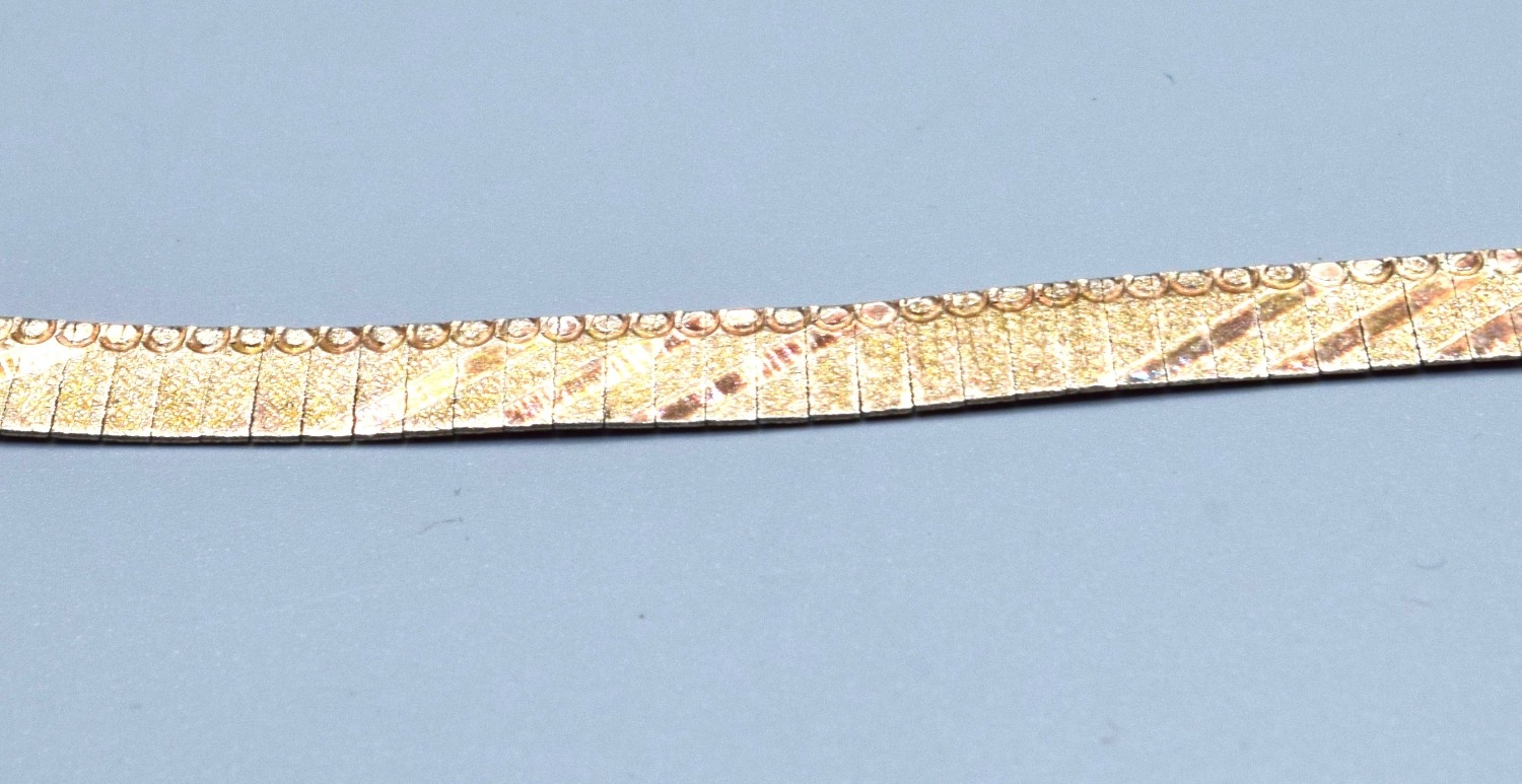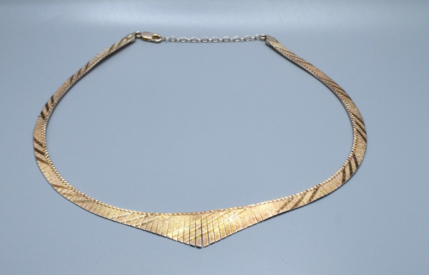 925silver and gold mix Cleopatra style flat link necklace with lobster claw catch 44cm long, 2cm at its widest 26grams