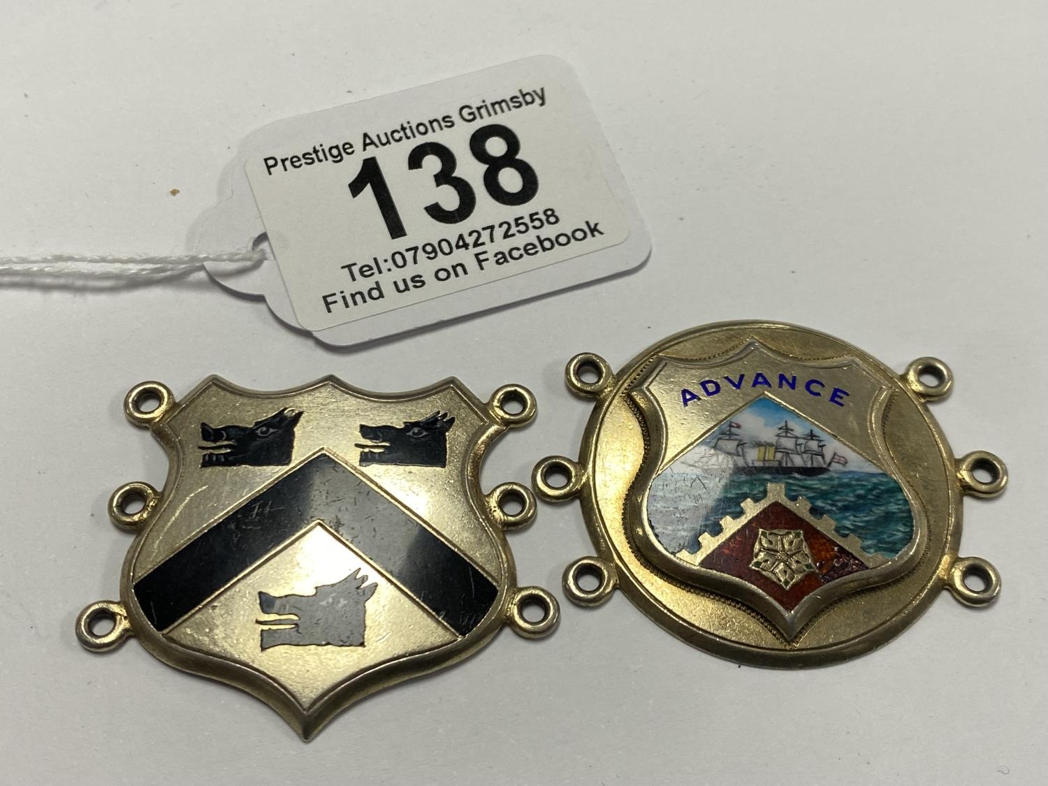 2 X SILVER ITEMS GRIMSBY CREST & SHIPPING CREST