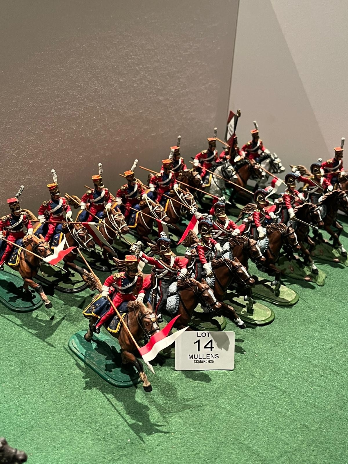 + Calendar 2026-04-17 12:00:00 2026-04-27 18:00:00 Europe/London The Collector's Cabinet Timed Online Auction Mullens Laurel Park April Collector’s Cabinet Auction showcases a variety of accessible collectibles for all budgets. The catalogue features a wonderful single owner collection of model soldiers and militaria with a strong focus on the Napoleonic wars, with some high quality, hand painted figures from niche and specialist makers from across Europe, and further afield, such as Niena in St Petersburg. The sale spans Edged weapons, through Dinky toys to some interesting and rare modern music and entertainment lots. Irish coinage along with gold and silver bullion complement a collection of Irish and international silver with some stand out pieces, including a three handled, silver banded and lined loving cup bearing the Fitzgerald family crest, part of the contents of Turlough Park House in County Mayo, some of which are included in this sale. *Please Note: toy lots may have wear, paint chips or some damage unless stated otherwise.  Unfortunately, it may not be possible to provide condition reports for lots with an estimate below €100. Lots 1-50 and Lots 66-148 will be sold as per photographs and unfortunately cannot be viewed in person, due to logistical purposes are boxed and ready for collection Mullen's Auctioneers