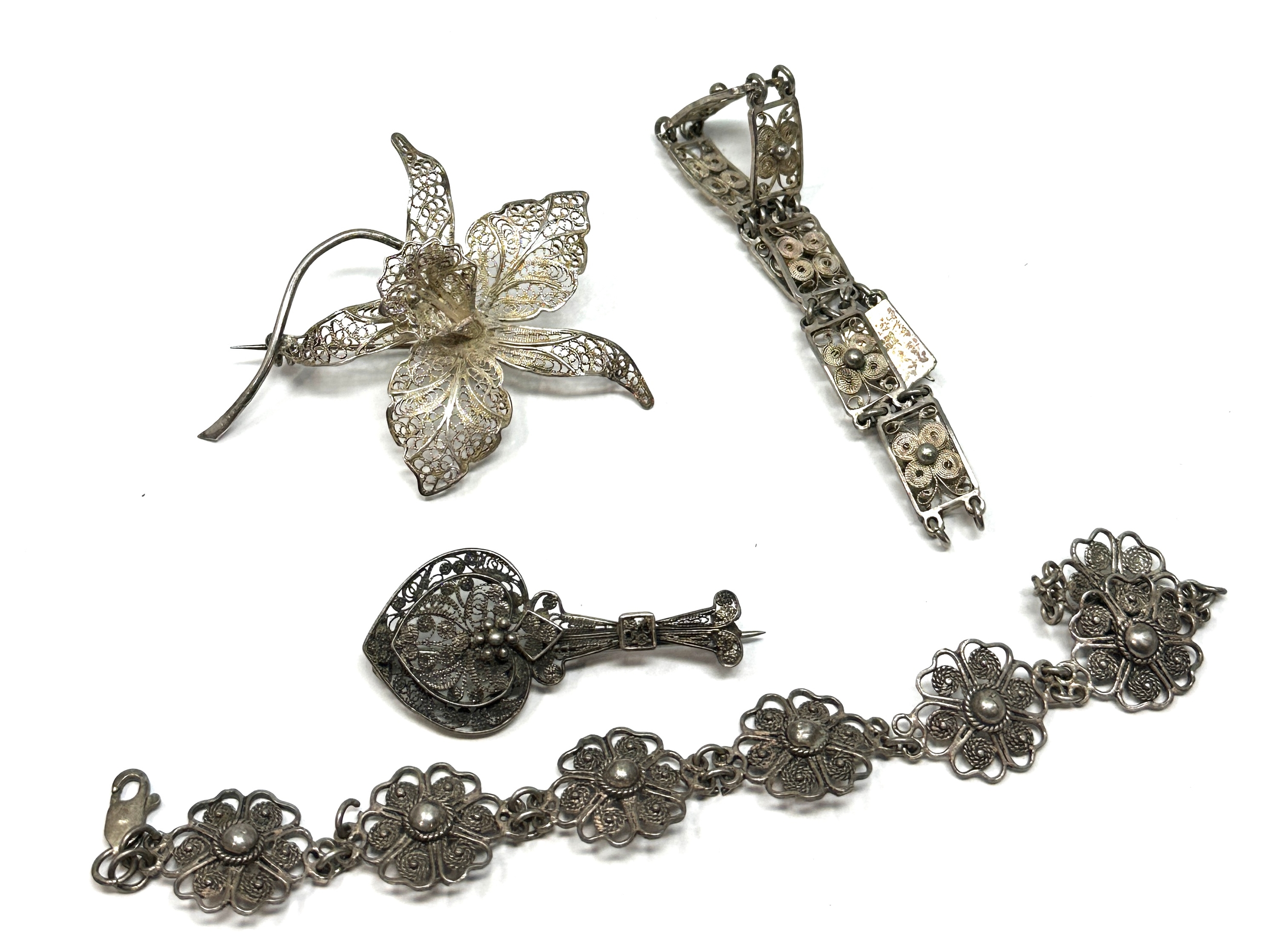 Selection of vintage filigree jewellery inc bracelets brooches weight 38g